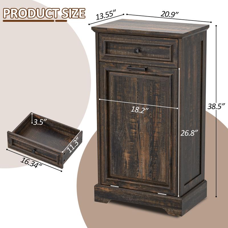 ·【Kitchen Safe Material】The trash can cabinet is made of MDF with polished moisture-proof stickers, simple, luxurious and easy to clean. All wood panels used in our products are perfectly compliant with the California Air Resources Board (CARB) P2 requirements.Made of high quality materials, so you can use it with peace of mind.
