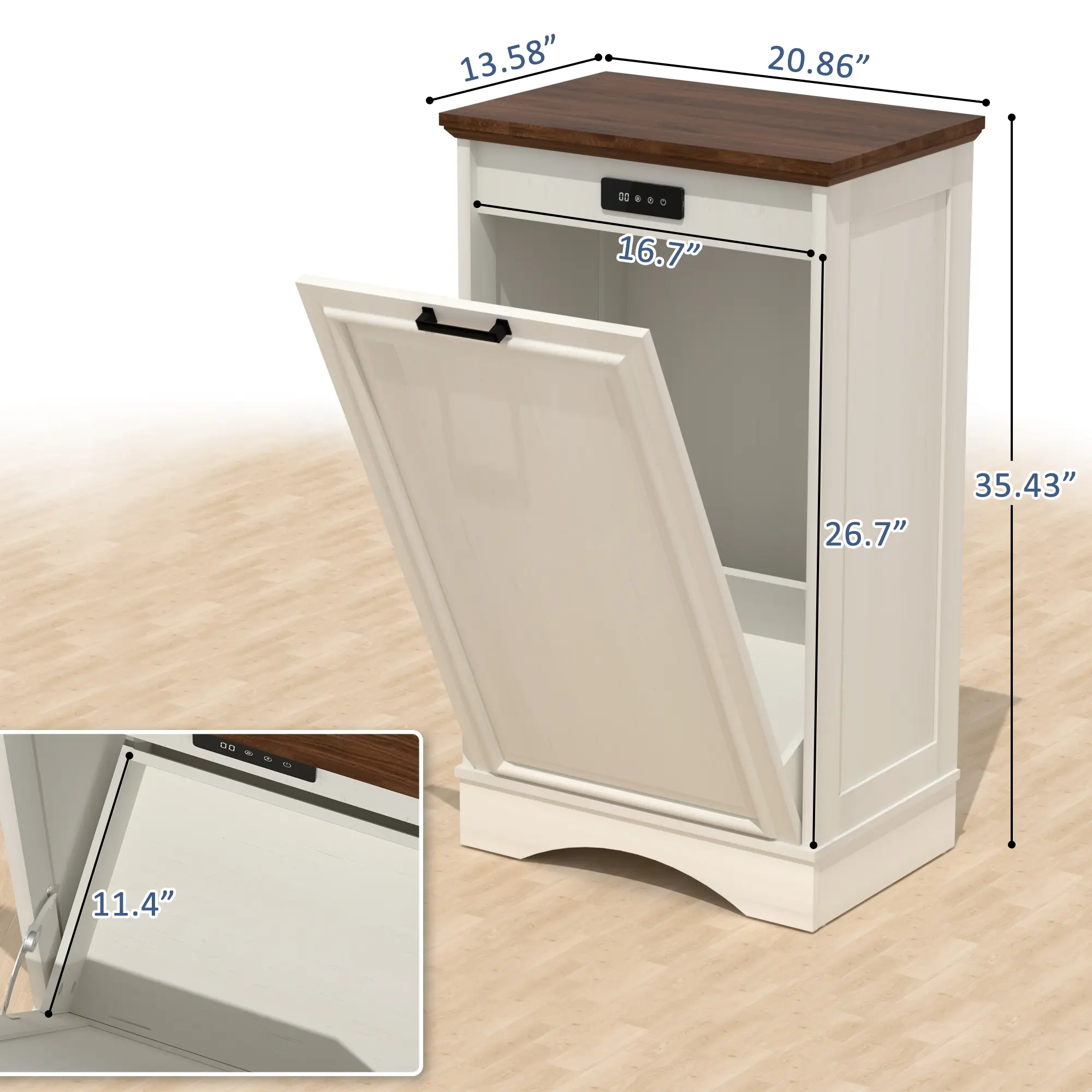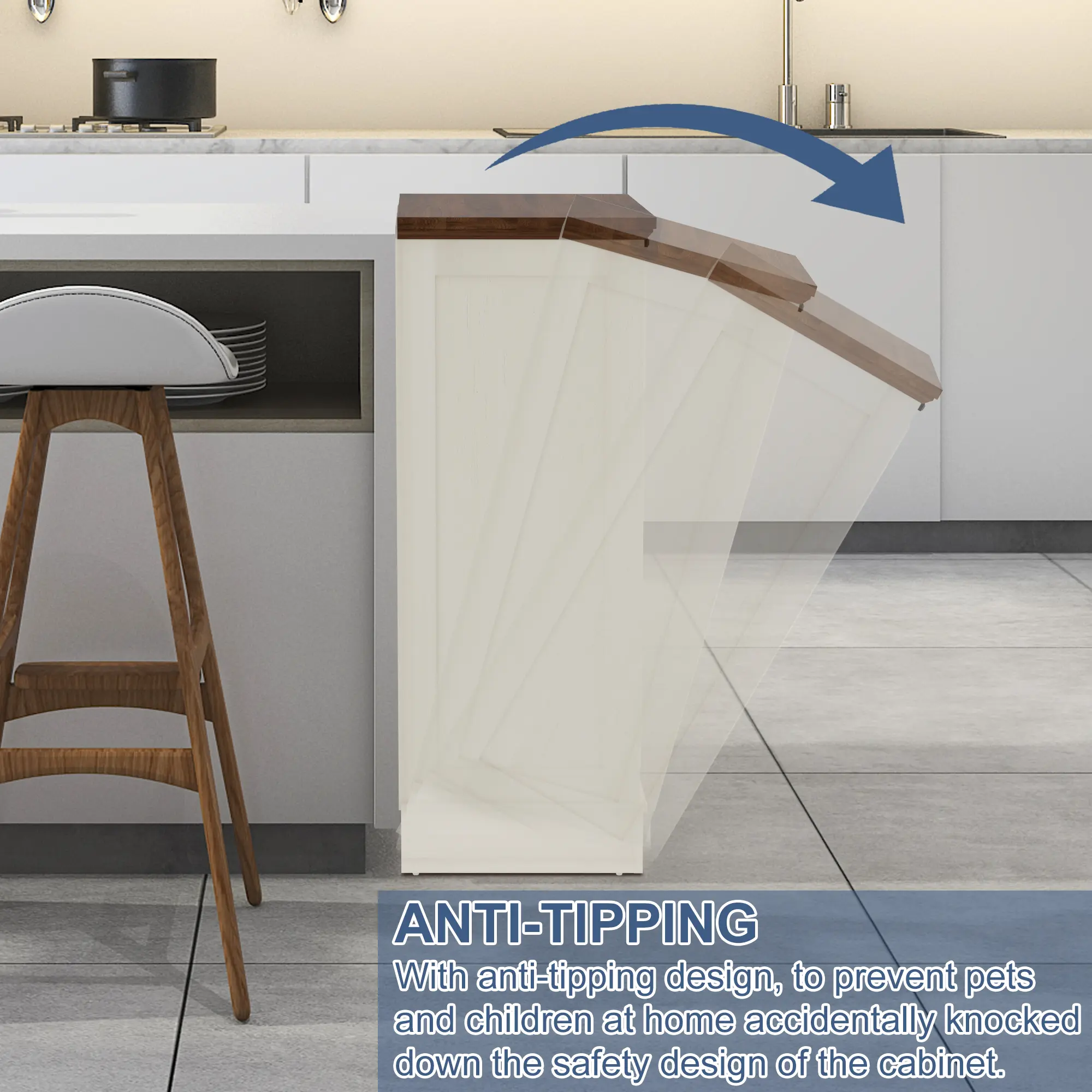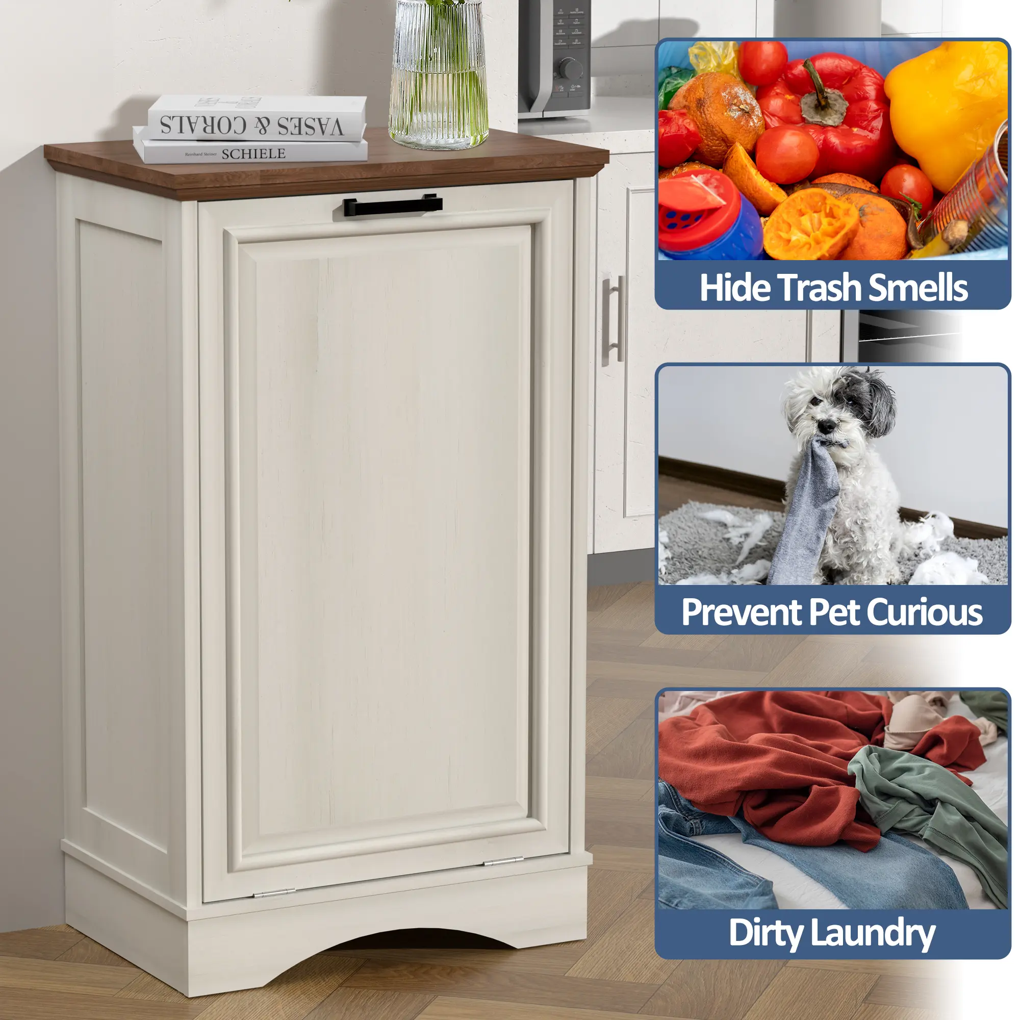 ·【Kitchen Safe Material】The trash can cabinet is made of MDF with polished moisture-proof stickers, simple, luxurious and easy to clean. All wood panels used in our products are perfectly compliant with the California Air Resources Board (CARB) P2 requirements.Made of high quality materials, so you can use it with peace of mind.