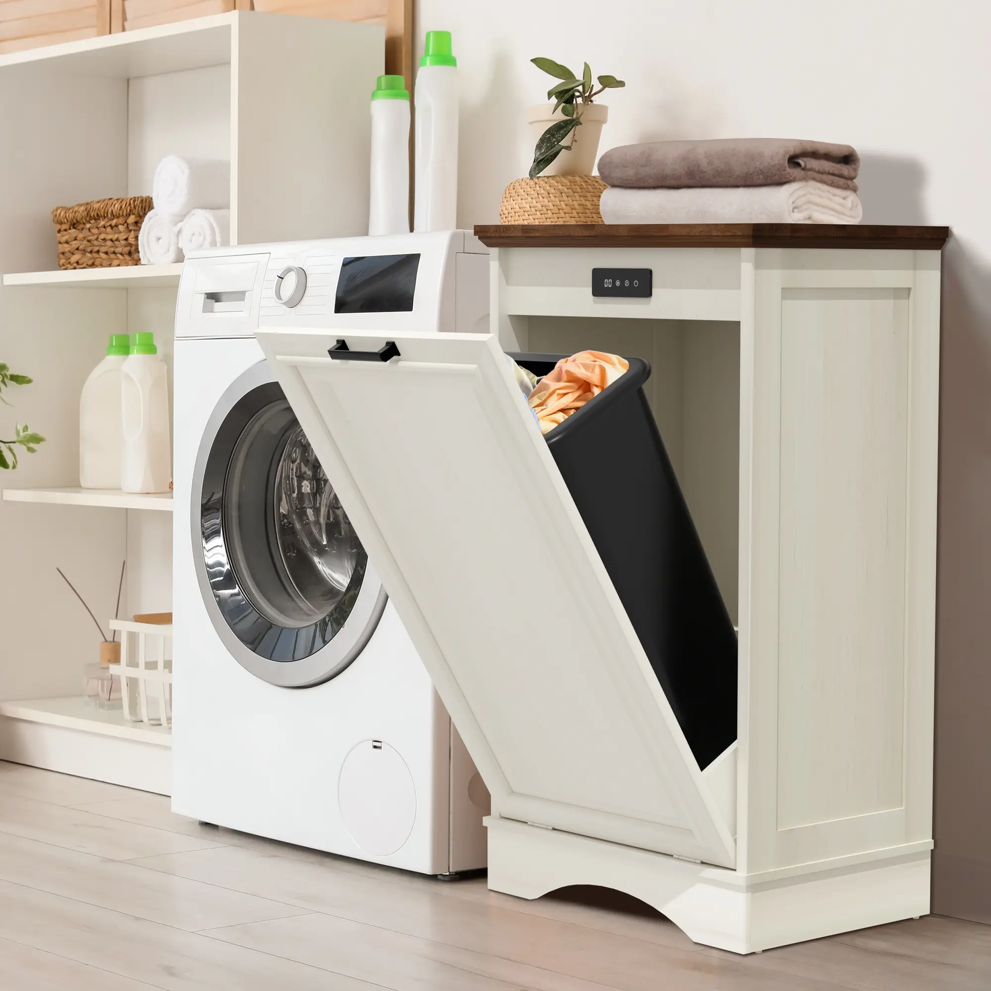·【Durable and Stable】Spurgehom Trash Can Cabinet is designed and constructed with rust-resistant hinges/knobs, quality drawer slides, and laundry baskets. Sturdy construction ensures it's durable enough to hold a 35 lb. Note: Fits plastic trash cans 13 gallons or less.