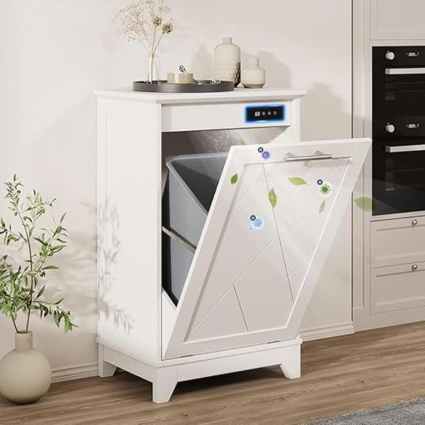 Enhanced Odor Control: The Halitaa hidden trash can cabinet features upgraded negative ion and deodorizing functions, effectively eliminating odors and harmful substances. Its unique deodorizing feature prevents odor diffusion, ensuring a clean and fresh environment for your kitchen and living space.