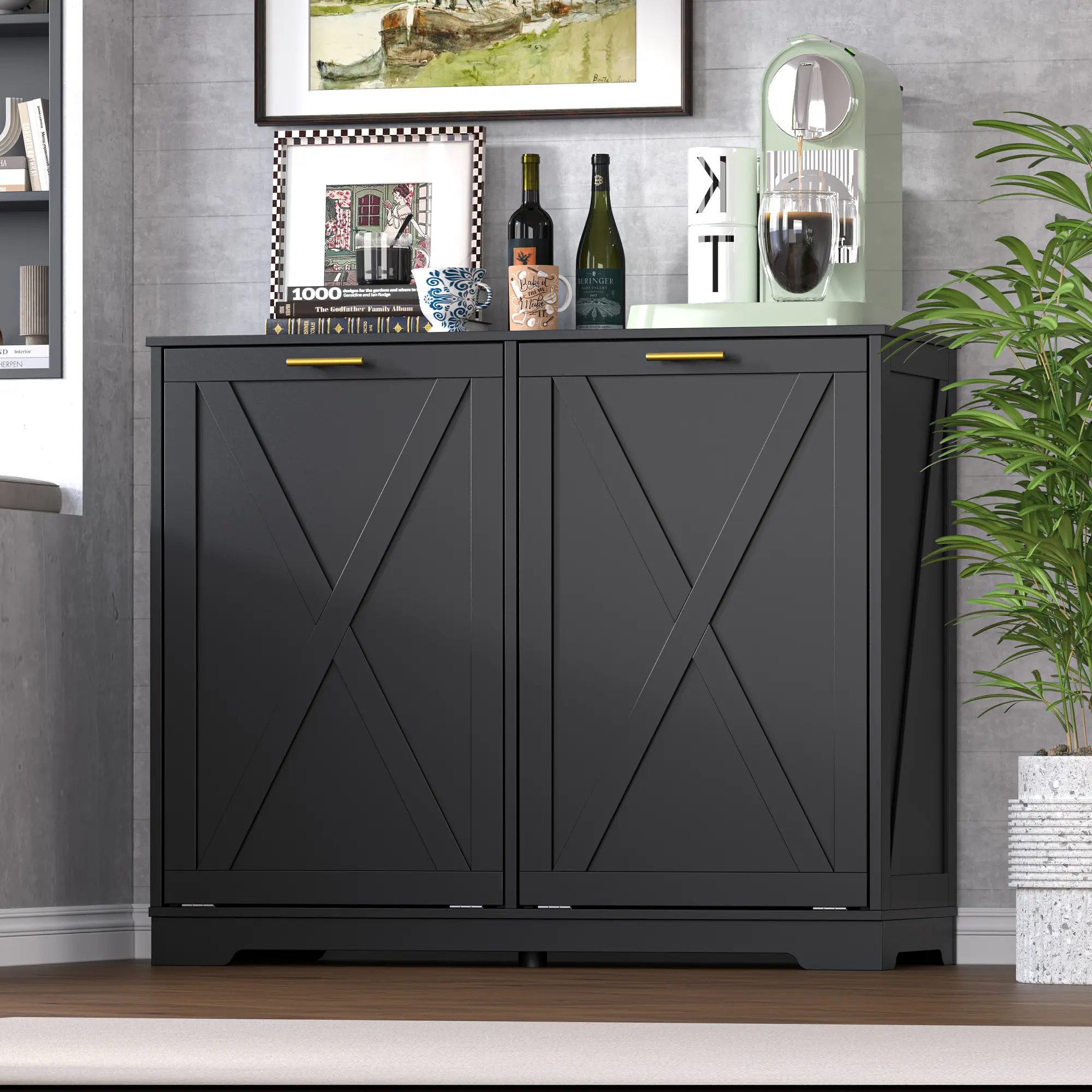 ·Premium Wooden Construction with Anti-Tip Safety: Built from thickened, P2 grade engineered wood, Any Maple white trash cabinet features soft-close hinges, gold-tone handles, and an elegant modern farmhouse style. The reinforced base and anti-tip kit ensure safety and stability—even in high-traffic family areas. Durable, waterproof, and scratch-resistant for long-term use.