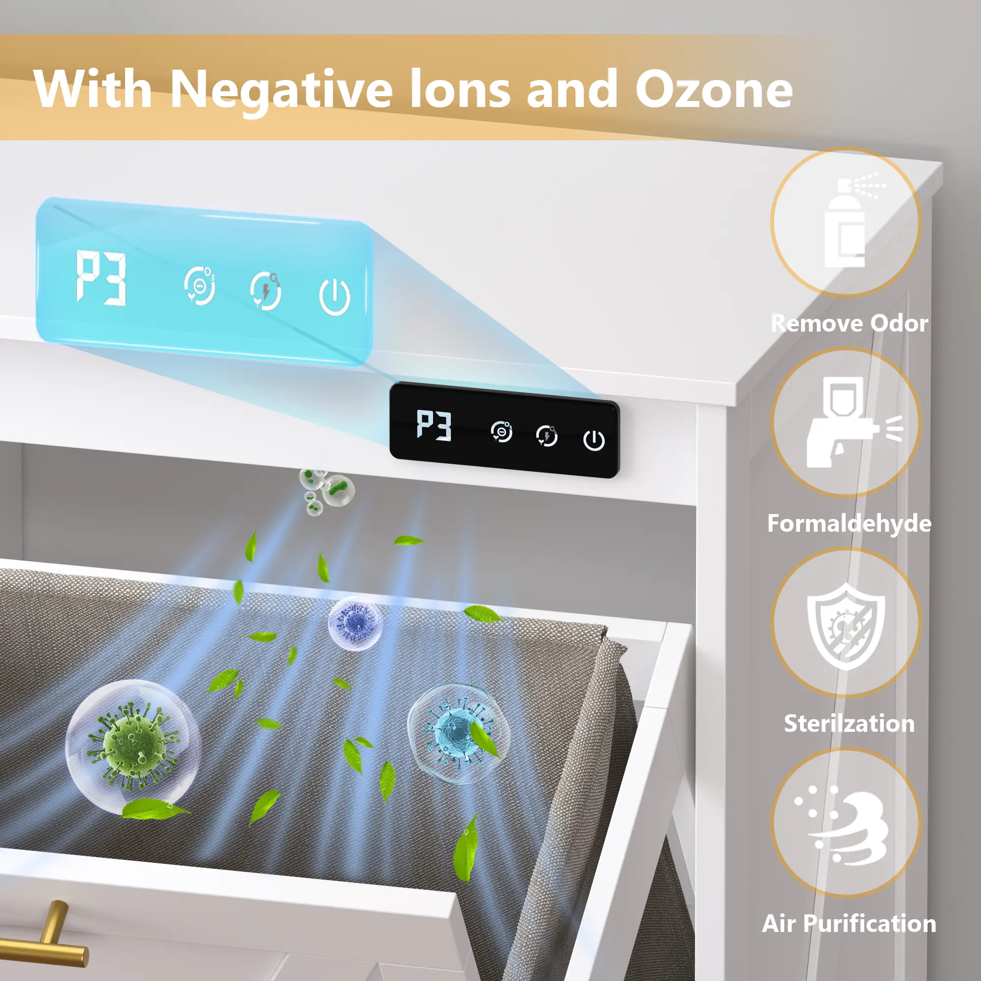 ·Advanced Odor Control Technology: Integrated with a negative ion and ozone deodorizer, Any Maple trash can cabinet effectively eliminates foul odors and airborne bacteria. Ideal for pet households or busy kitchens, it refreshes the air around your cabinet while providing a healthier environment. No more holding your nose when opening the bin—this is your odor-free solution.