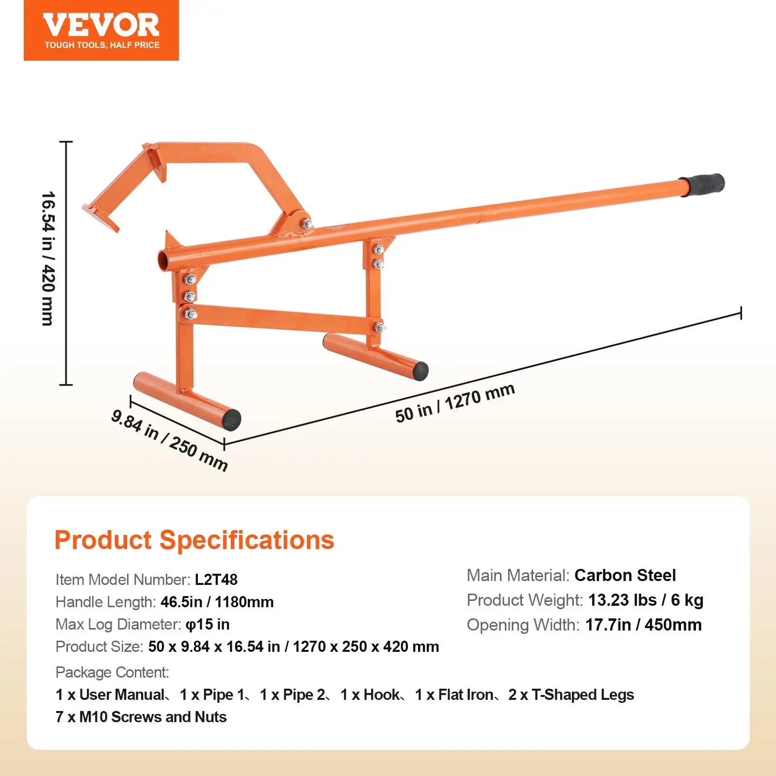 • Compatible with Various Log Sizes: The adjustable iron hook of the log jack accommodates logs up to φ15", allowing you to lift logs of different sizes with ease.