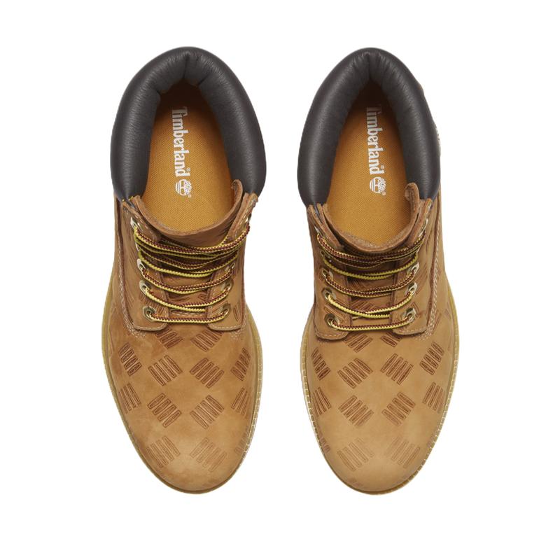 The Timberland 6" Premium Waterproof Boot in Wheat with Debossed Print blends classic rugged style with durable protection. Crafted from premium waterproof leather, it features a padded collar, secure lacing, and a sturdy rubber outsole for traction. The subtle debossed pattern adds a modern twist to the iconic silhouette. Tough, stylish, and ready for any adventure—your new all-weather go-to boots.