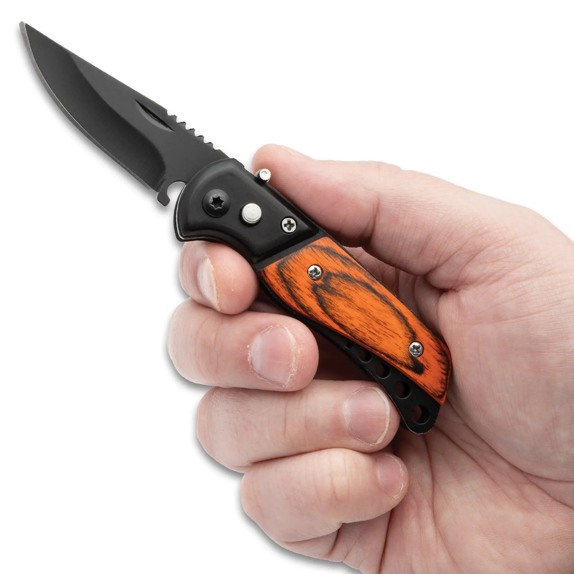 Push-button deployment provides quick, effortless blade access when you need it most. This feature eliminates the hassle of manual opening, ensuring you can access your knife swiftly during emergencies or daily tasks. It's designed for convenience and ease of use.