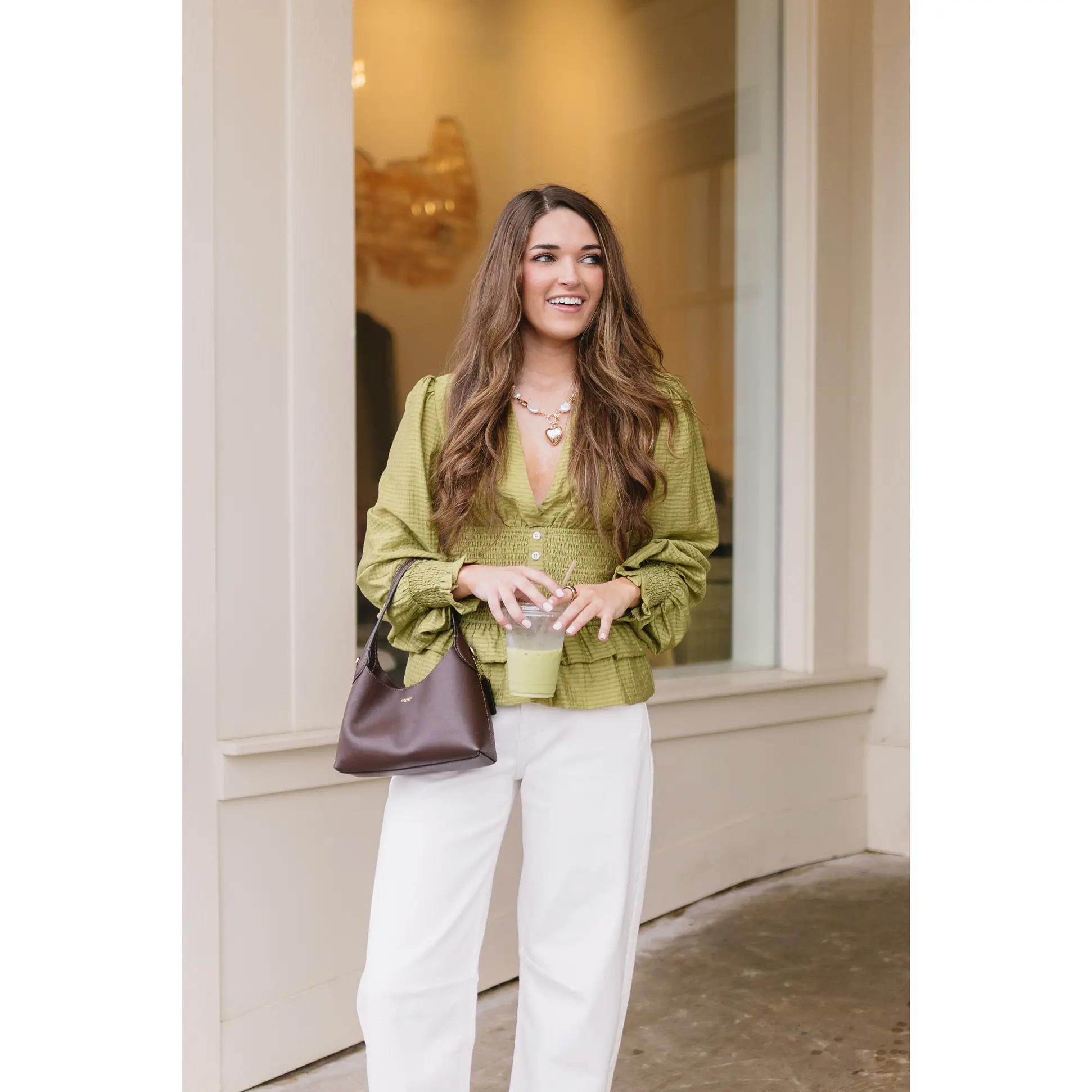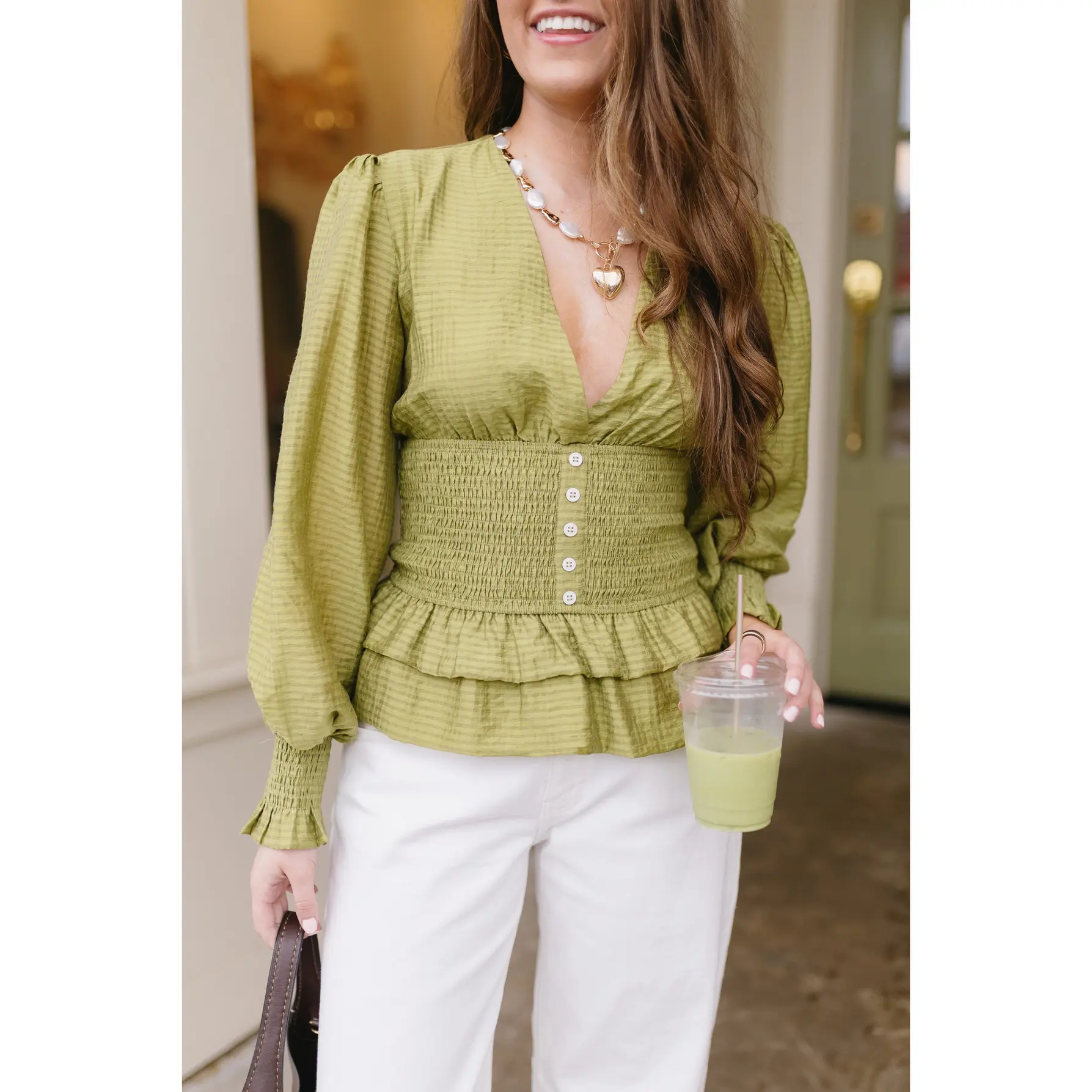 ·Smocking at waist and wrists