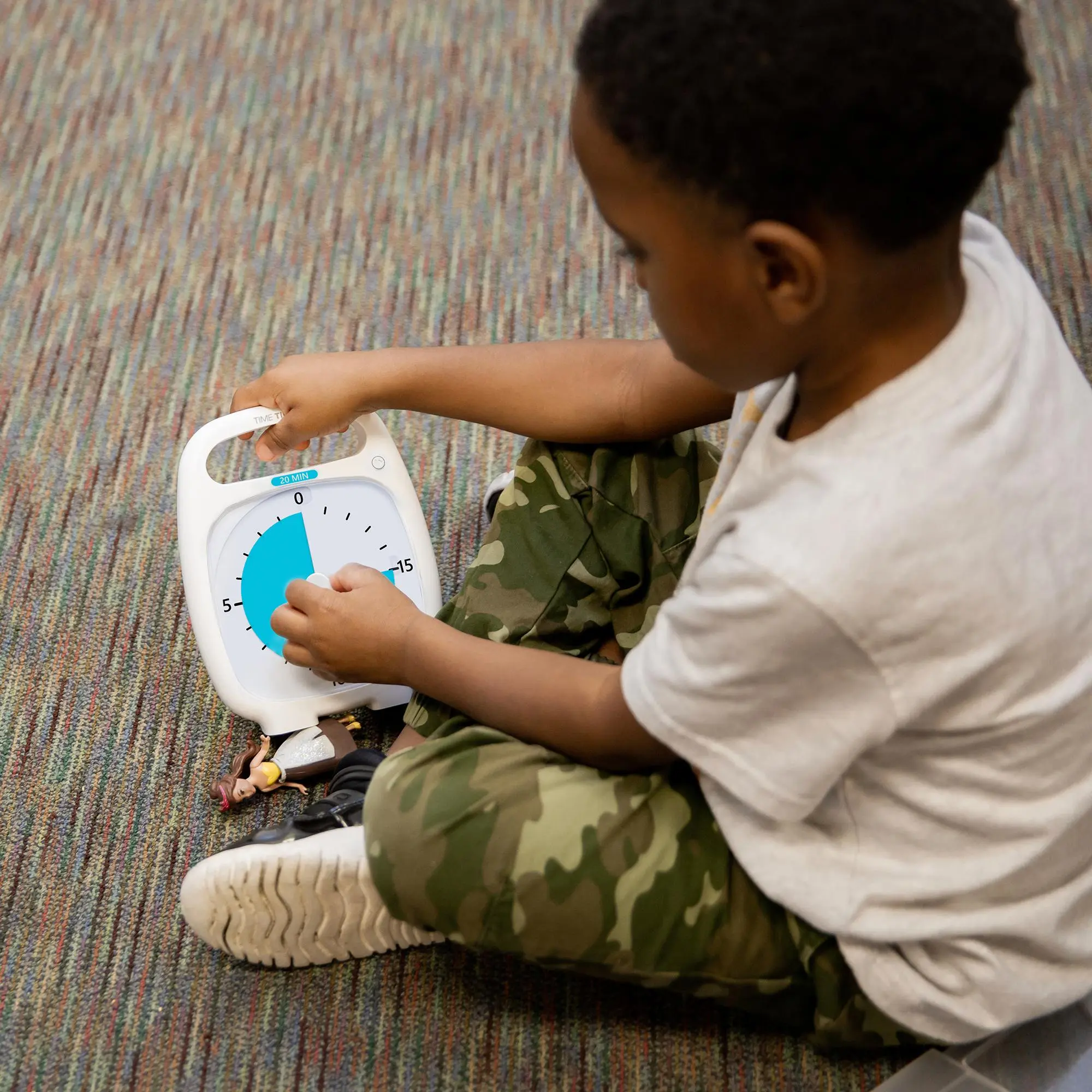 The PLUS® 20-Minute encourages independence and self-regulation for short-duration activities, screen time, and focused time blocks. The built-in carrying handle and a pause button enhance executive function skills.