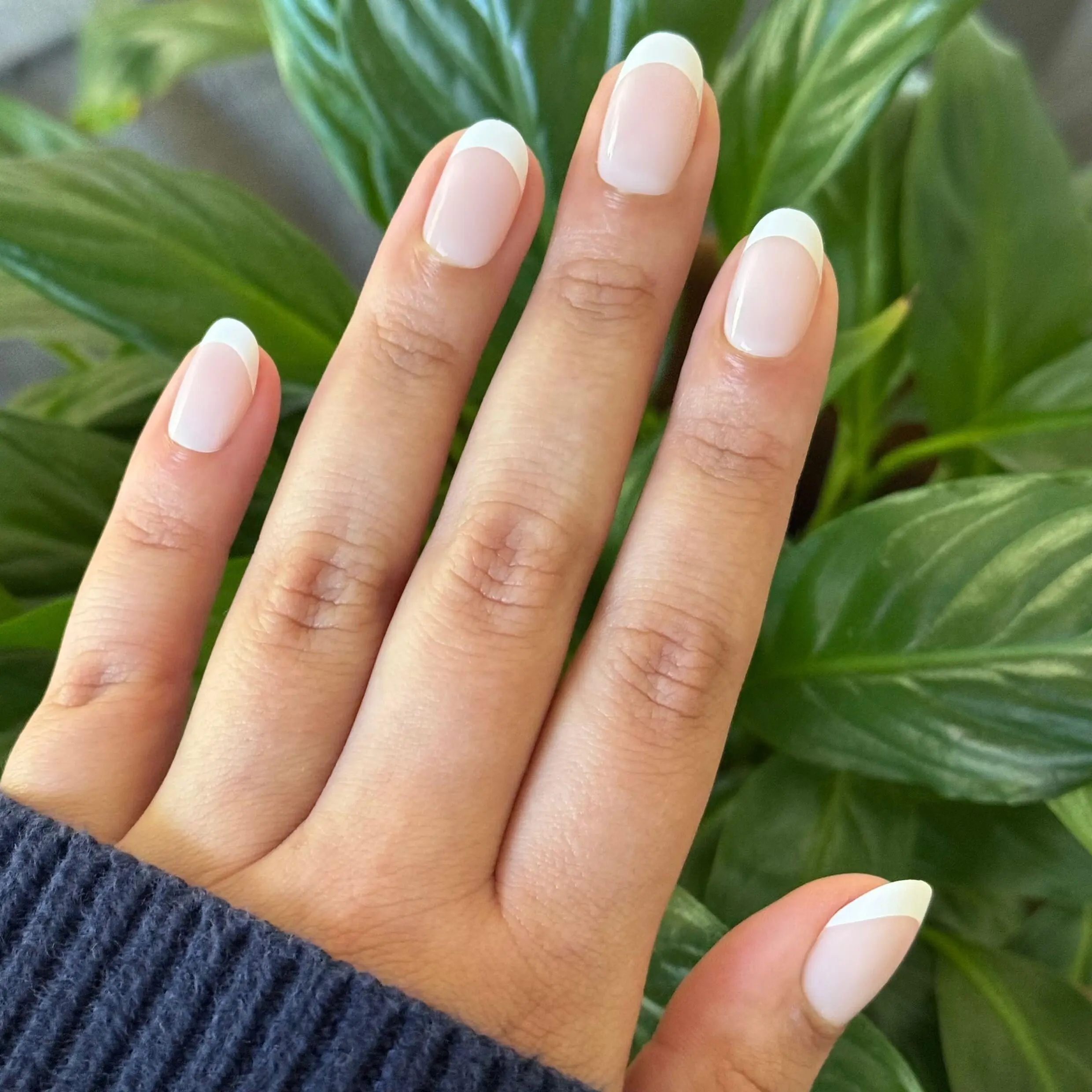 A sheer neutral base with a diffused milky white tip french mani in a short round shape.“One of our favorite celebs wore O&J on the red carpet, and we needed to commemorate with the perfect set of press-ons”! XO SGT