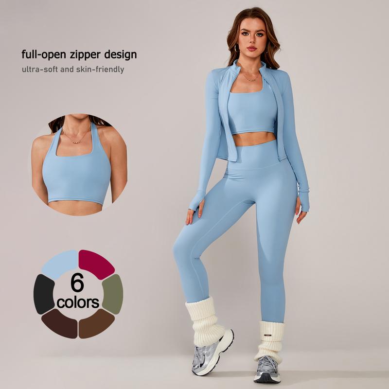 ✨ Elevate your workout wardrobe with the TimeOFF Women's 3-Piece Activewear Set. This set includes a stretchy, body-hugging crop top, leggings, and a jacket, perfect for yoga, workouts, and athleisure. The design ensures comfort and flexibility during any activity. Ideal for women seeking versatile, stylish activewear.