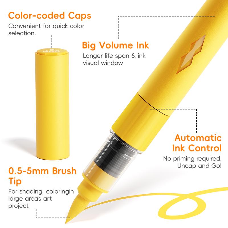 The unique automatic ink control balances pressure inside and outside the pen, ensuring natural ink flow. Gently shaking the pen provides accurate and uniform control. The ink flows smoothly, offering brighter colors and stronger coverage without stratification. No more worries about ink blocking the nib!