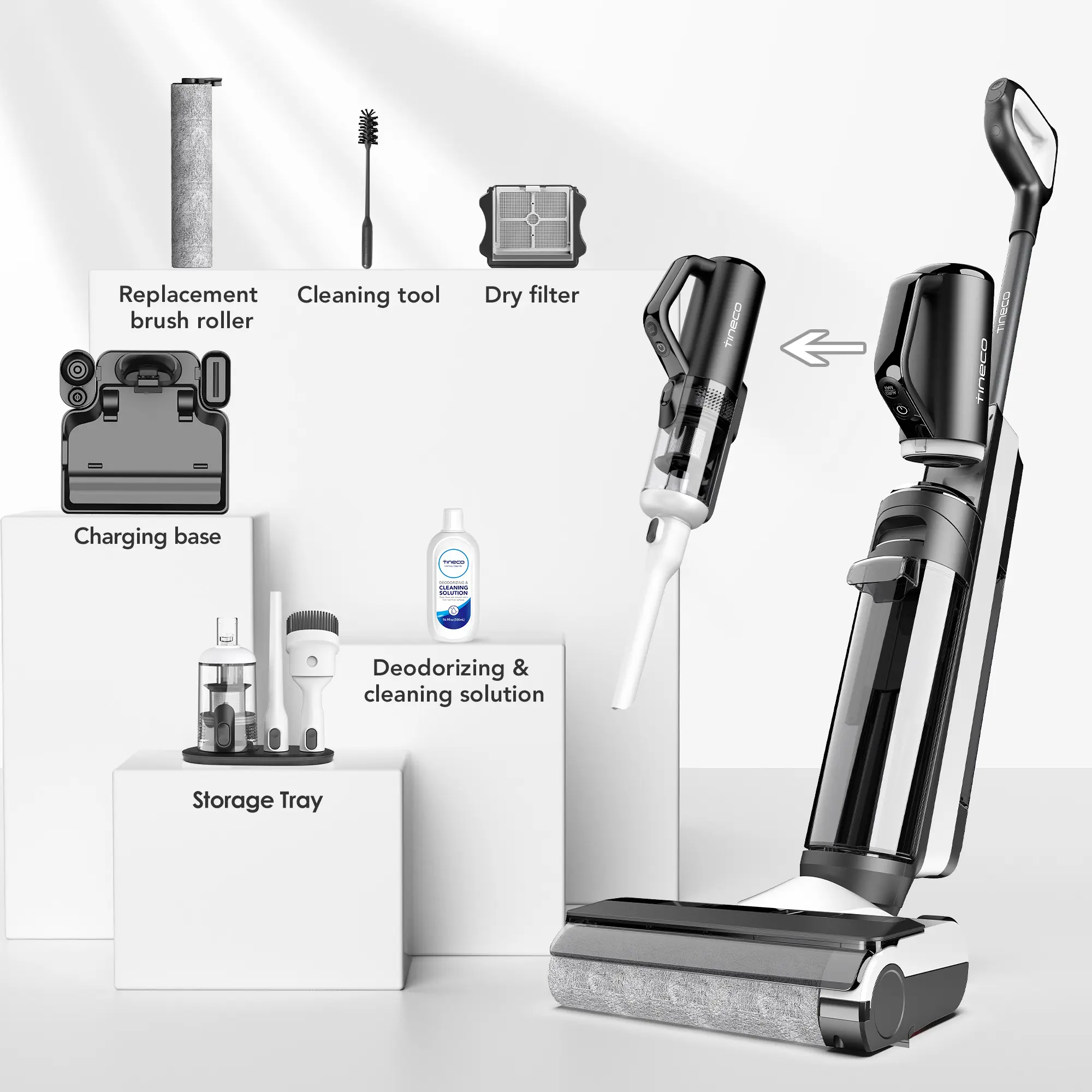 ·Converts to a Handvac: This floor washer easily converts to a handheld vacuum with attachments to reach corners, stairs, crevices, car interiors, and more. Hand vac accessories include dustbin, storage tray, crevice tool, and 2-in-1 dusting brush.