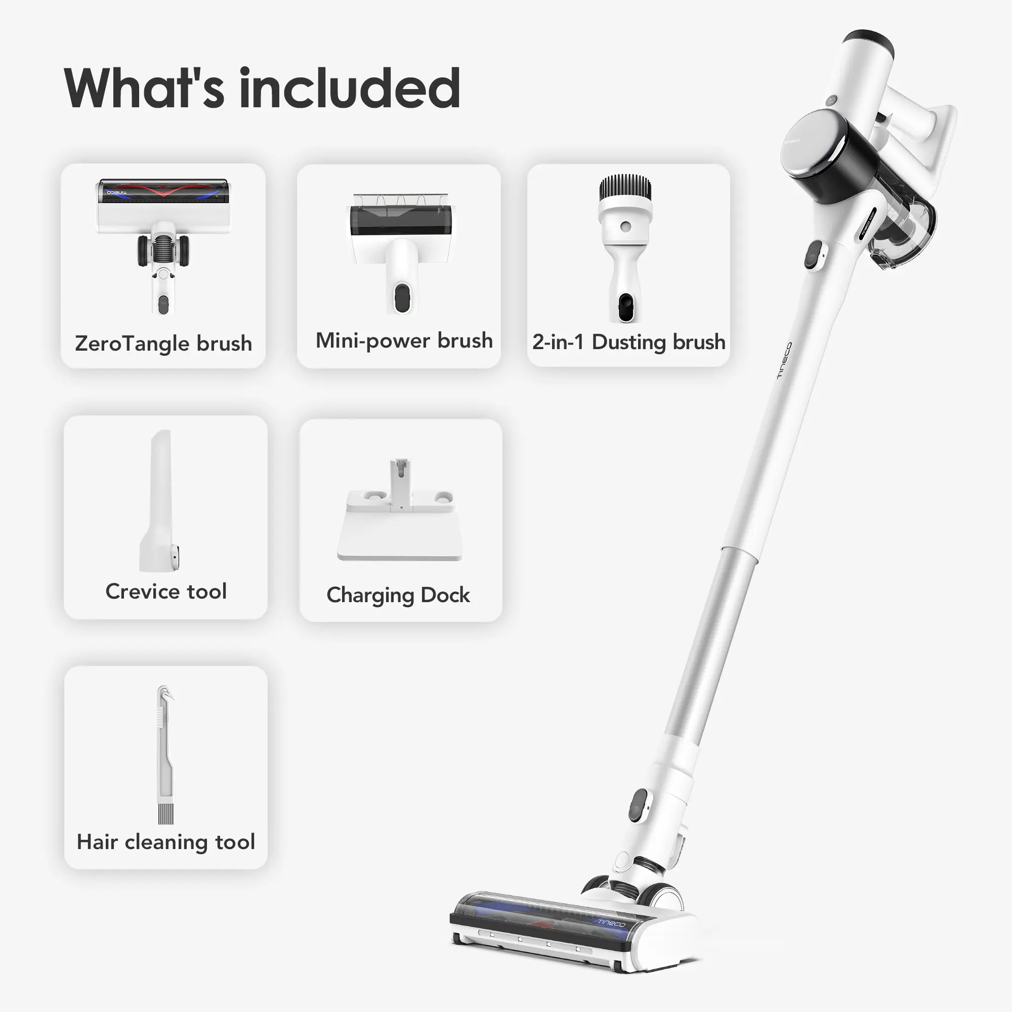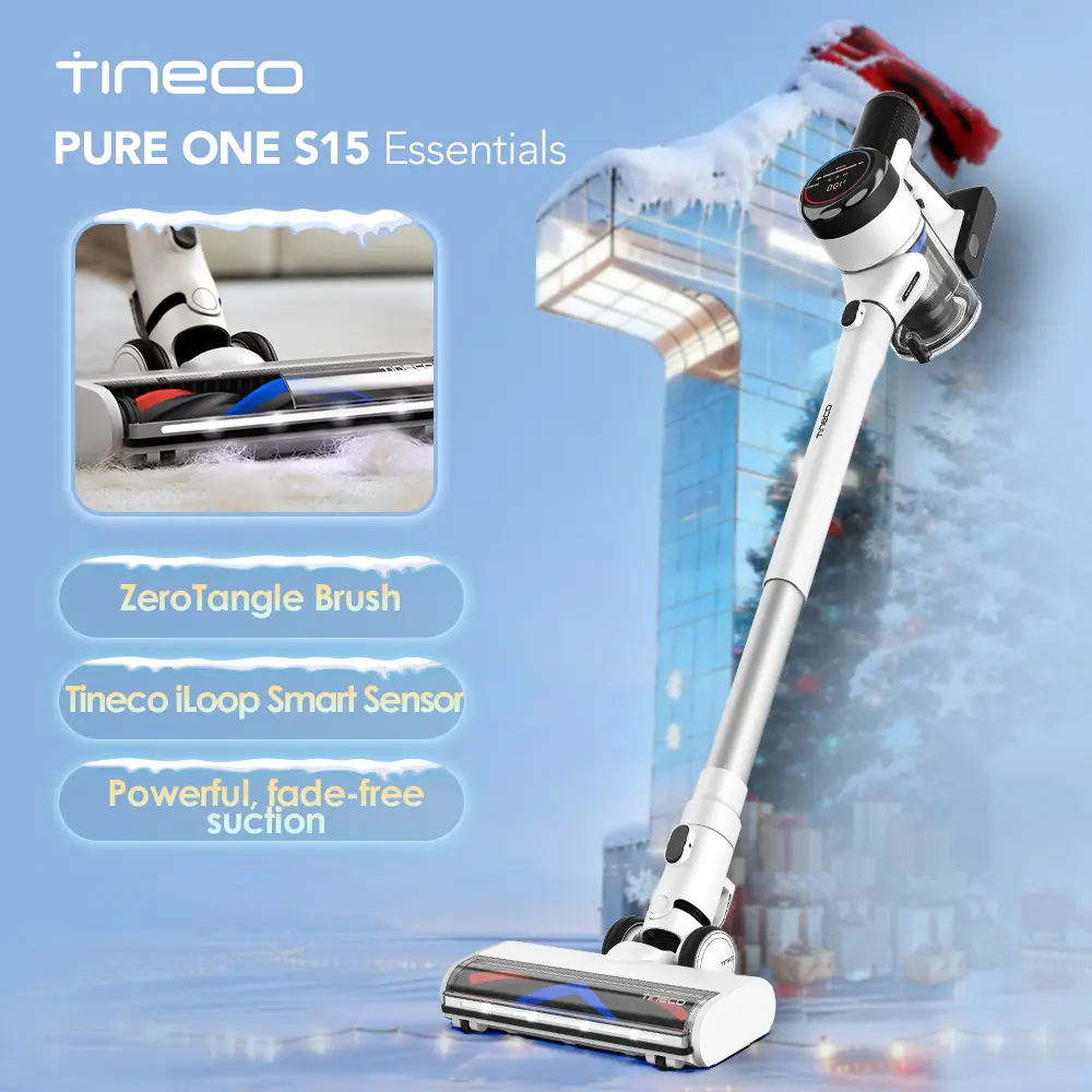 1. TINECO iLOOP SMART SENSOR— S15 automatically adjusts suction power according to the soiling detected, improving both runtime and efficiency: clean up to 130m² on a single charge, from ceiling to floor with versatile attachments.