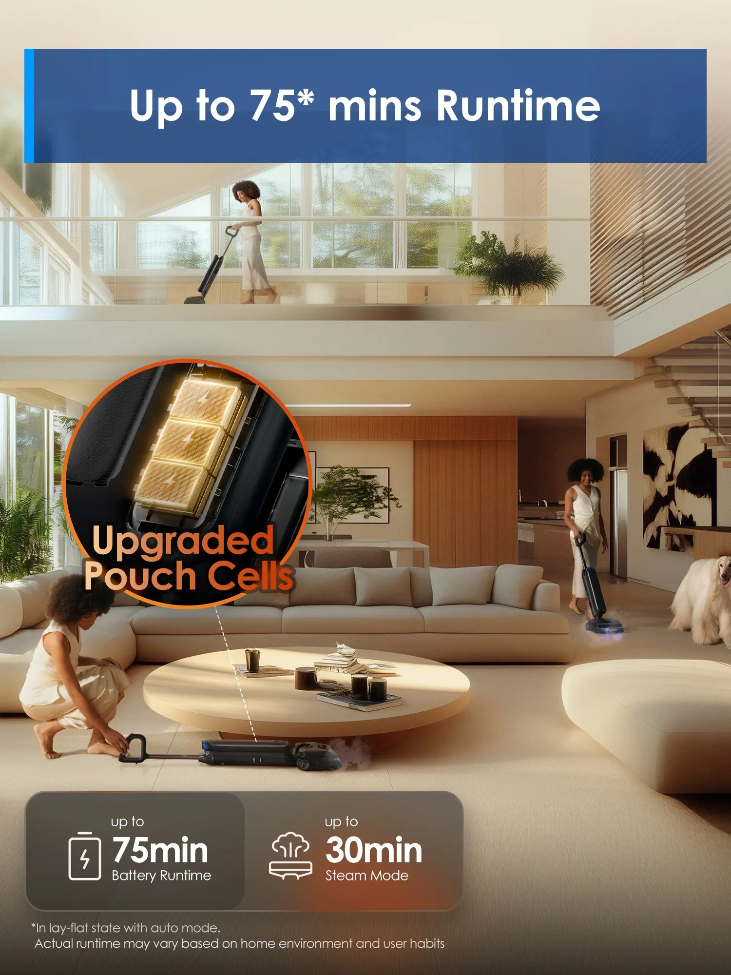 💪 22kPa Suction Power & 75-Min Runtime: Experience industry-leading suction power for thorough cleaning. With an extended runtime, enjoy uninterrupted cleaning sessions without frequent interruptions. Stay efficient and effective throughout your cleaning routine.