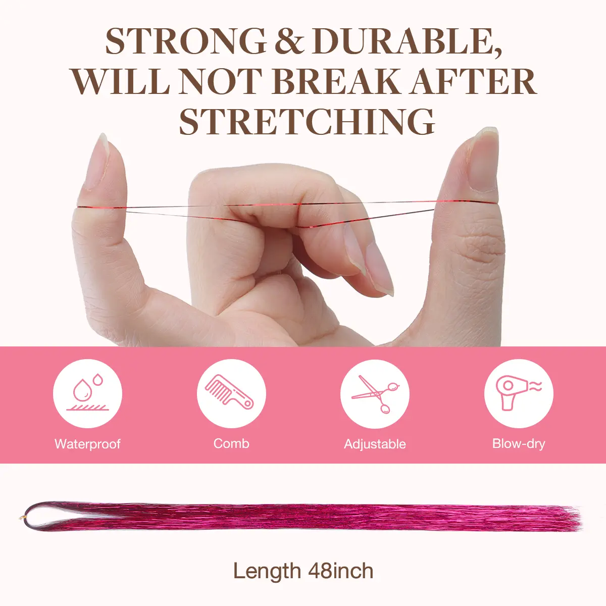【Easy to Use】: Hair tinsel can last for several weeks, even with washing, drying, and flat ironing.