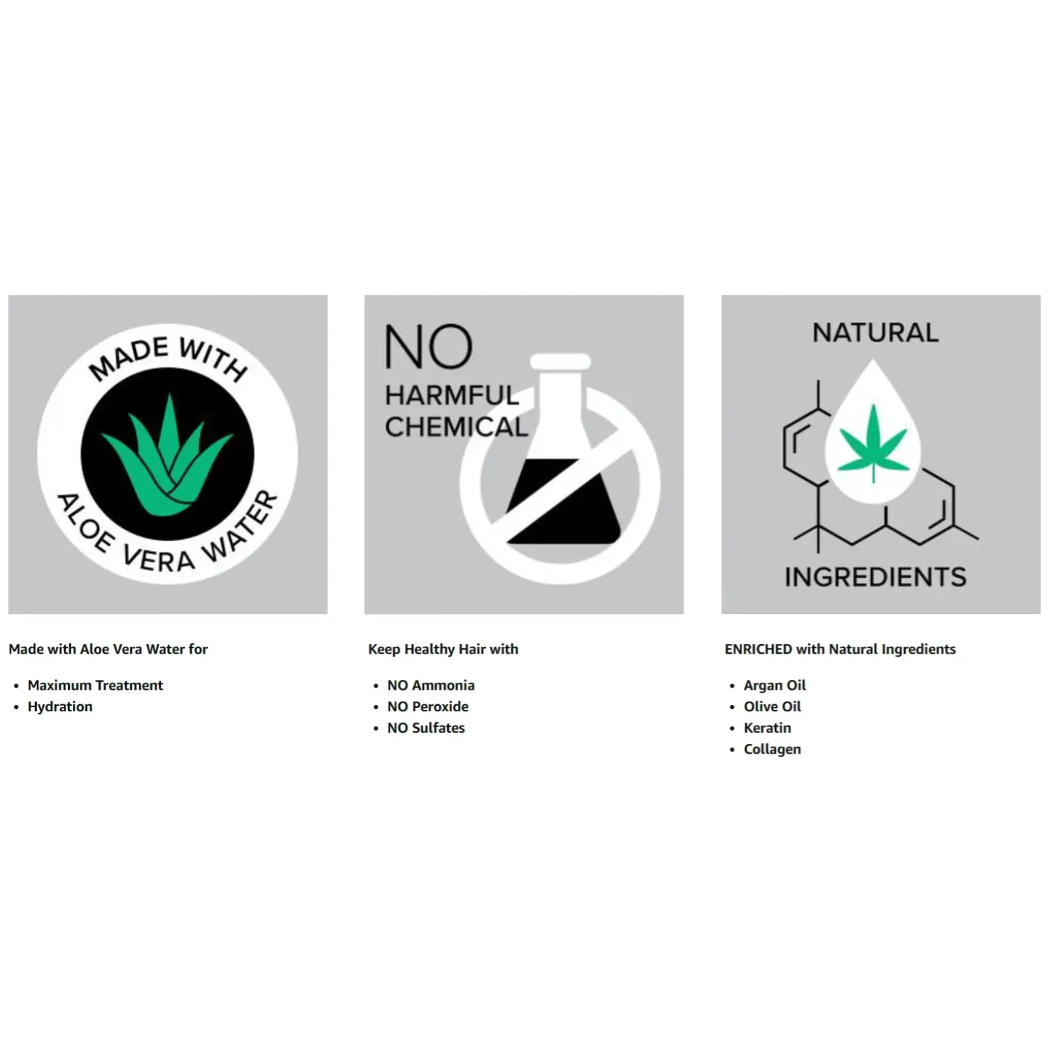 IngredientsALOE VERA WATER,ARGAN OIL,OLIVE OIL,COLLAGEN,KERATIN,SEE PACKAGING FOR COMPLETE LIST OF INGREDIENTS