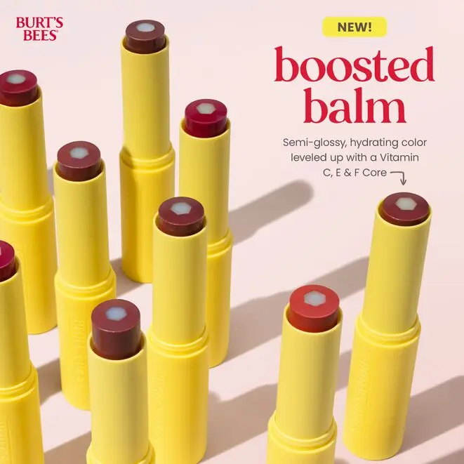 Burt’s Bees Boosted Balms delivers 24-hour moisture with a nourishing Vitamin C, E, and F core for antioxidant protection and moisture barrier reinforcement to leave lips feeling softer.