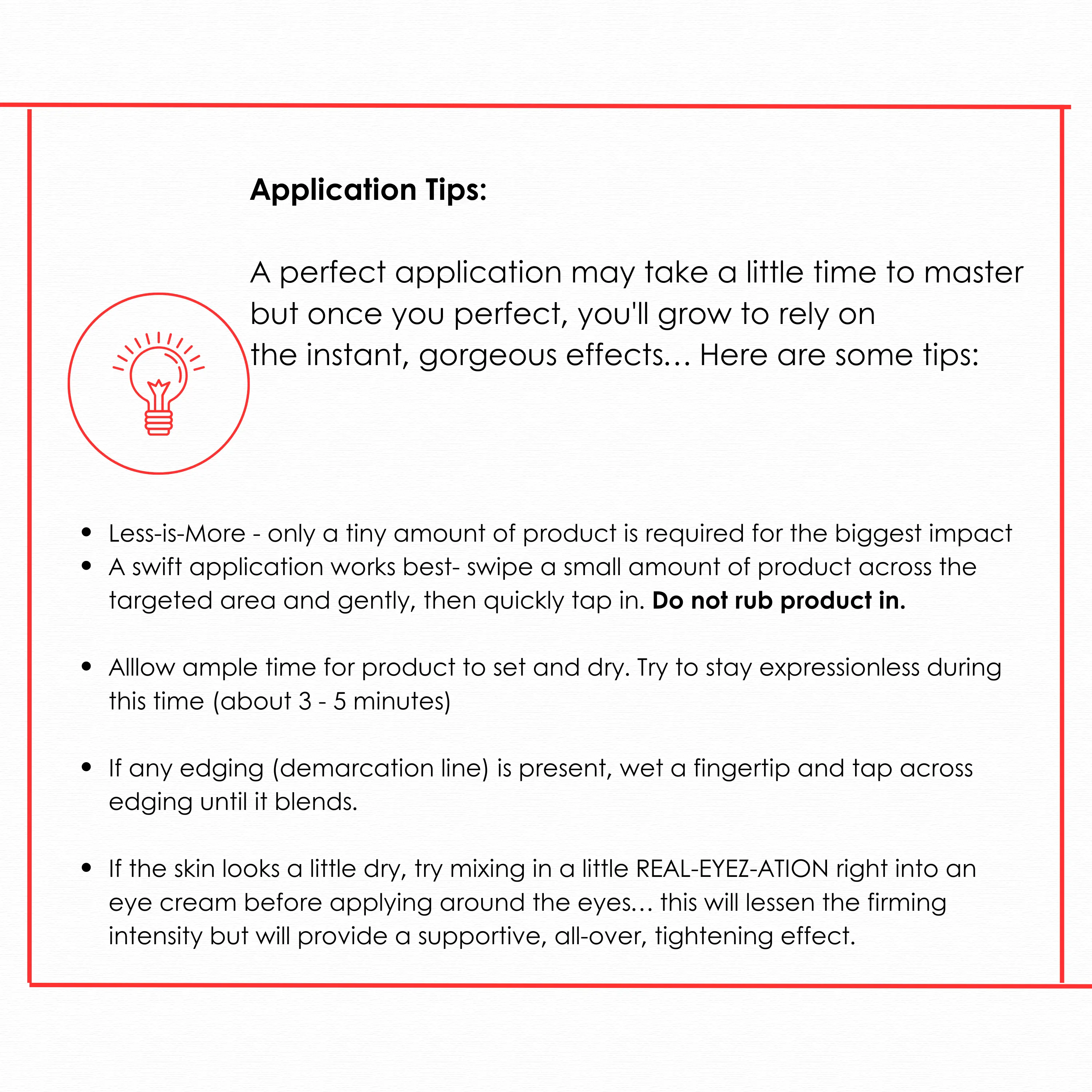 ·For a softer firming effect, mix with a small amount of eye cream before application.