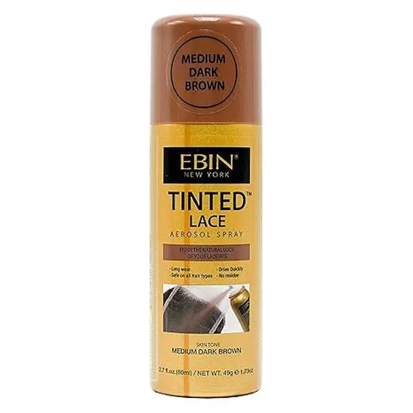 Find your perfect shade with our Tinted Lace. Tinted lace is an aerosol spray designed to give your lace wigs a more natural look. These quick, pigmented, and buildable sprays were formulated to match your skin tone and make the lace disappear. Your bleaching days are over, just spray & slay!