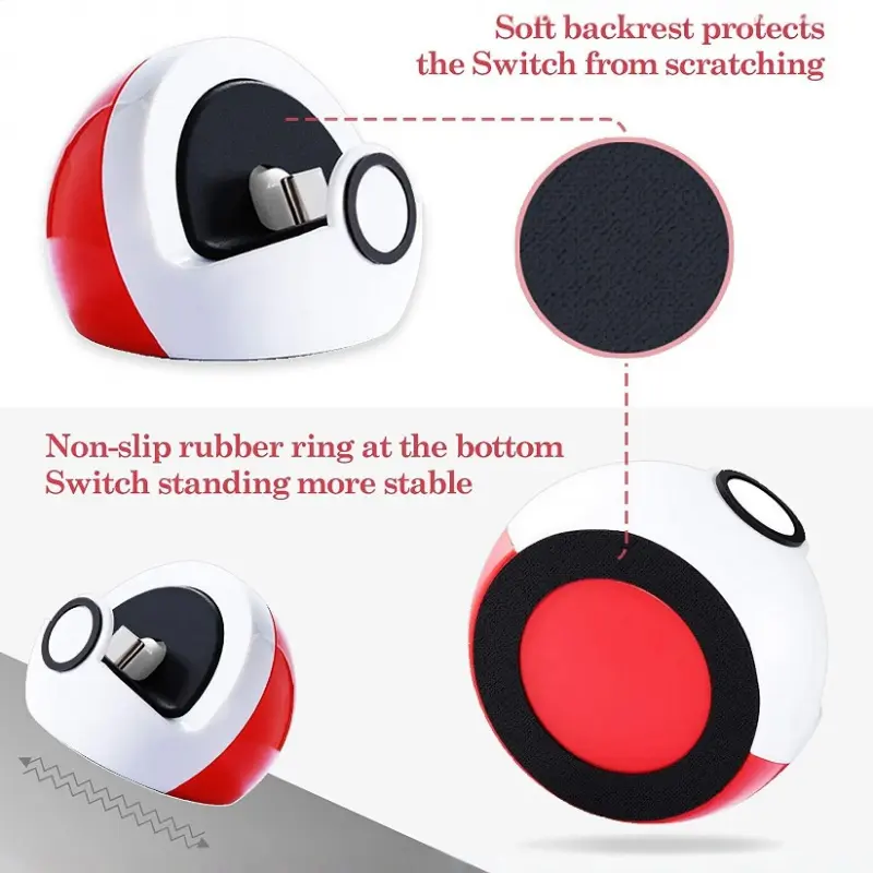 Tiny Compact Charging Stand Compatible with Nintendo Switch/Switch Lite/Switch OLED, Portable Cute Switch Dock Station Console Accessory with USB-C Port for Switch Games, No Projection, Red&White