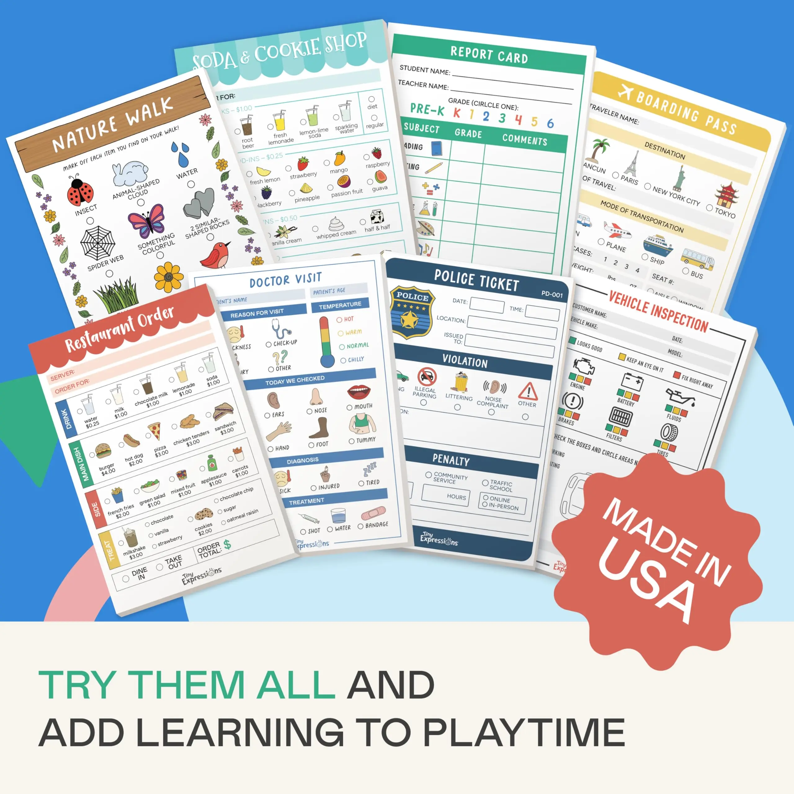 Encourage kids to step away from screens and dive into imaginative play, whether they’re managing a restaurant or visiting the doctor's office. Playtime notepads are perfect for enhancing creativity and role-playing skills and are ideal for both home and classroom settings, offering engaging pretend play.