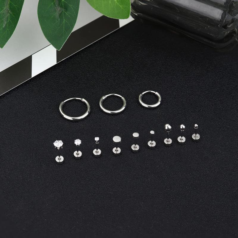 [CLASSIC EARRINGS SET]: One order includes 9 pairs stackable tiny earrings: CZ earrings; dot earrings; ball earrings; 3 pairs ear piercing hoops. You can match them flexibly to make you charming.