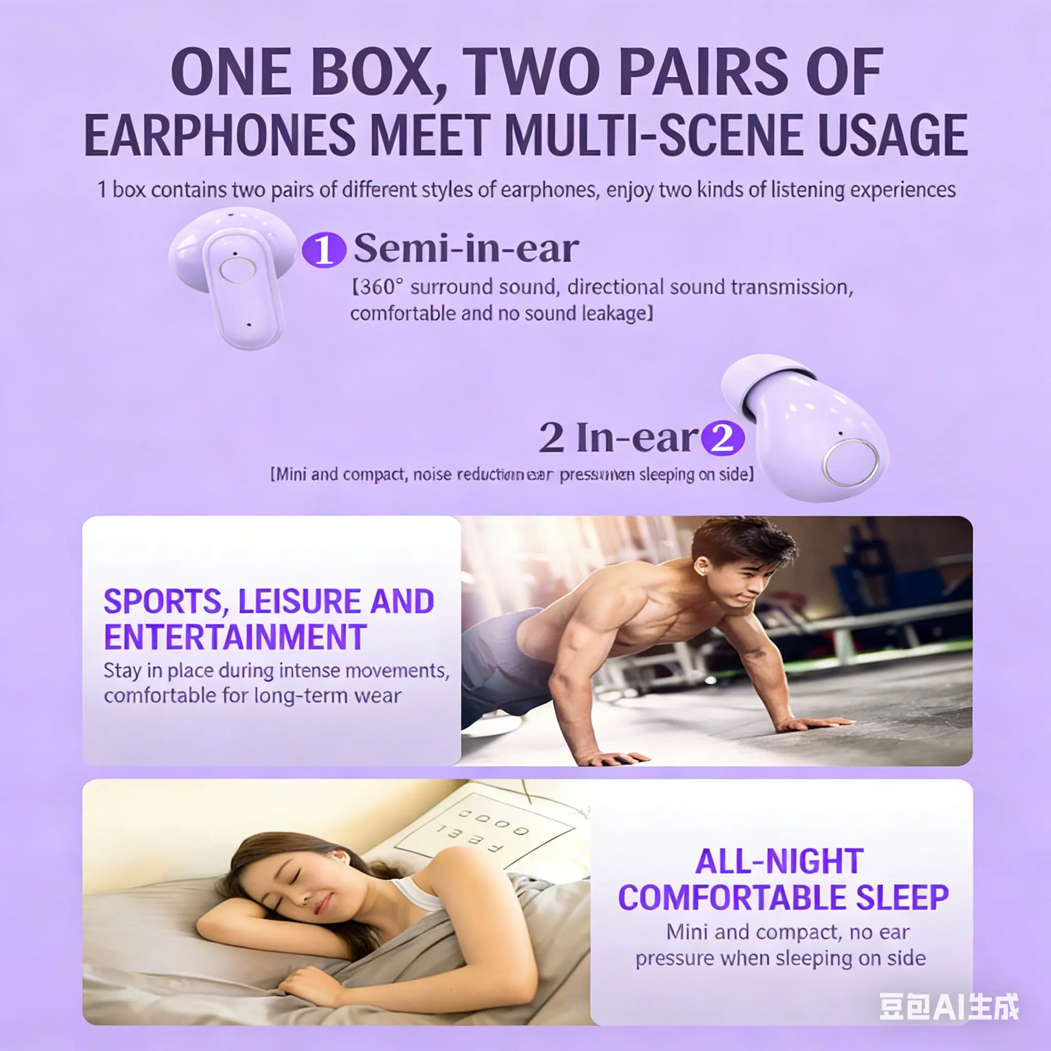 These earphones are suitable for both sleep and sports, offering versatility in use. The set includes 2 pairs, providing options for different needs.
