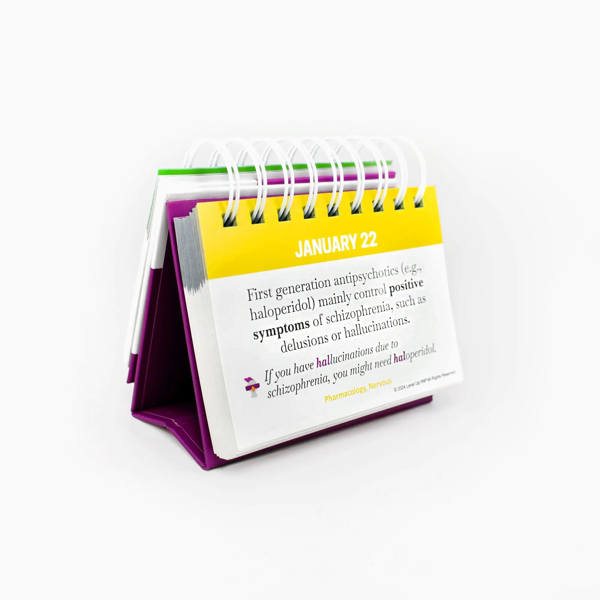 This engaging calendar is the perfect gift for anyone starting nursing school, currently in nursing school, preparing for the NCLEX, or currently practicing. The information contained within is applicable to both PN and RN students and nurses alike.