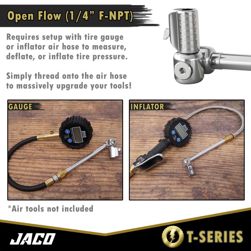 ·Open Flow: features high-precision threaded fittings (1/4 inch F-NPT) for quick setup with in-line tire pressure inflators and gauges for superior pressure control during tire inflation maintenance.