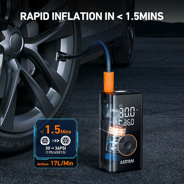Great product overall, especially for the price. I’ve already used it first day and it worked flawlessly pumped up my tire from 14 pounds of pressure to 36 pounds in about five minutes or less.