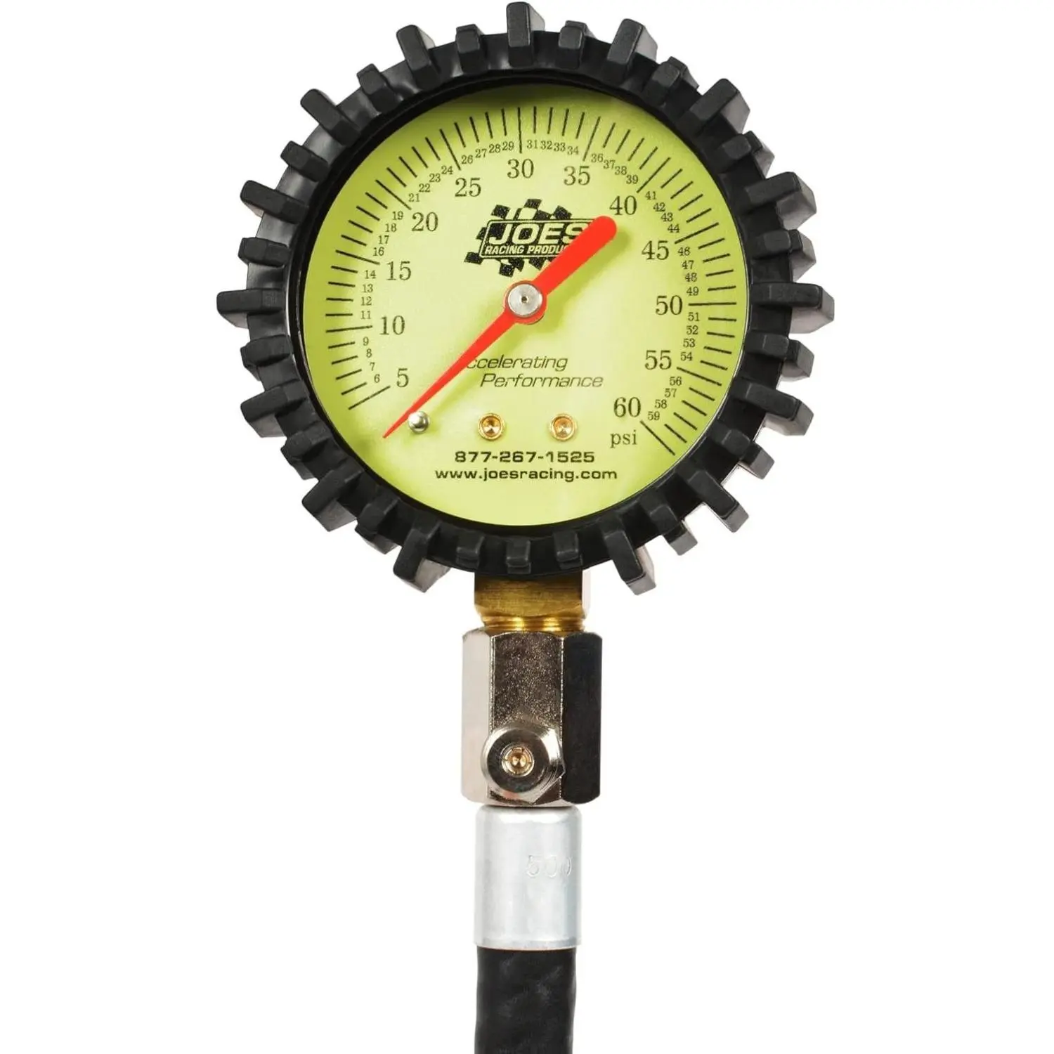 Ensure your tires are properly inflated with the Joes Racing Products Glow-In-The-Dark Tire Pressure Gauge 32307. This gauge is designed for use with 0-60 PSI tires, making it a reliable tool for monitoring tire pressure.