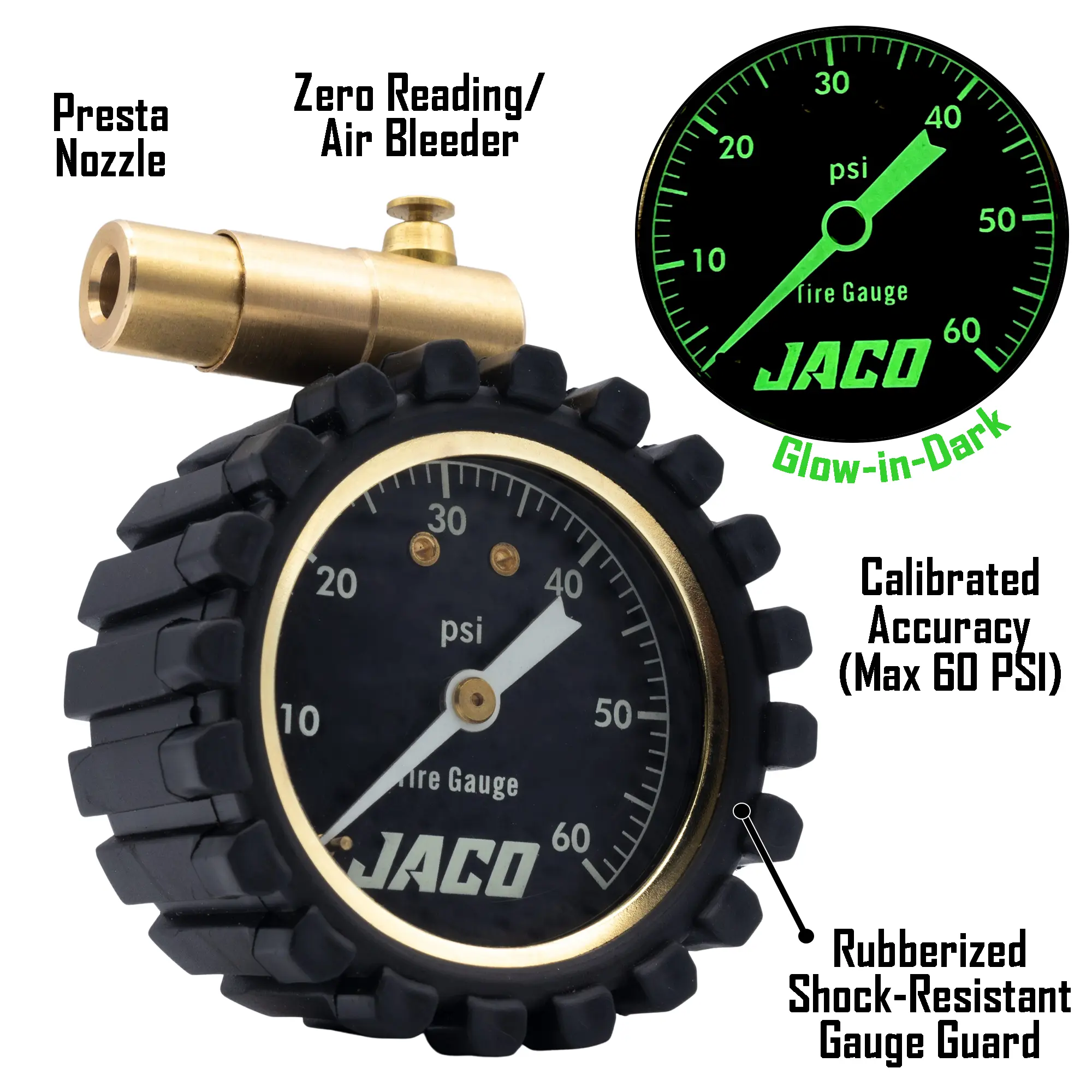 ·Rugged durability - feels solid in the hand & shielded by our shock-resistant rubberized gauge head cover, keeping the gauge protected from drops & vibrations. The 90-degree direct Presta valve nozzle lets you easily get in between the bike wheel spokes to measure tire pressure with ease.