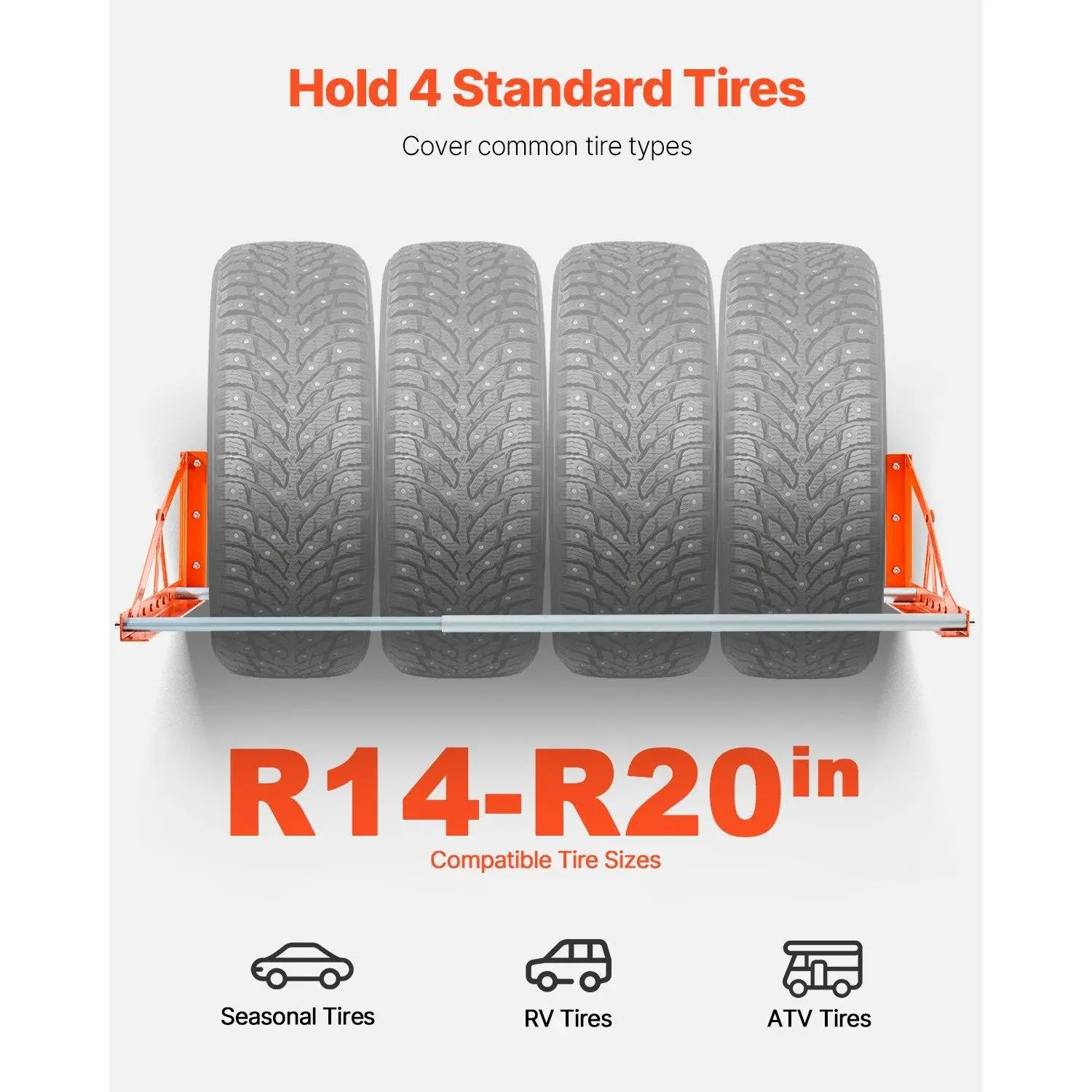·Durable and Rust-Resistant: Crafted from tough Q235 carbon steel, this heavy-duty tire rack can hold up to 400lbs (181kg), offering rock-solid durability. Reinforced with powder-coated finish, the tire storage rack is built to resist rust and corrosion, ensuring long-lasting reliability.