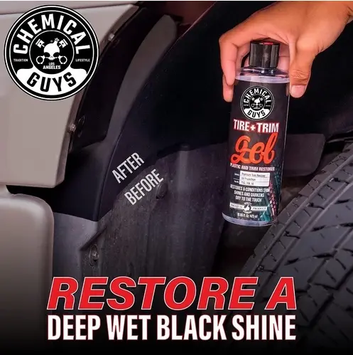 ·Among our tire shines, Tire + Trim is an oil-based gel dressing that penetrates deep to nourish and restore faded trim.