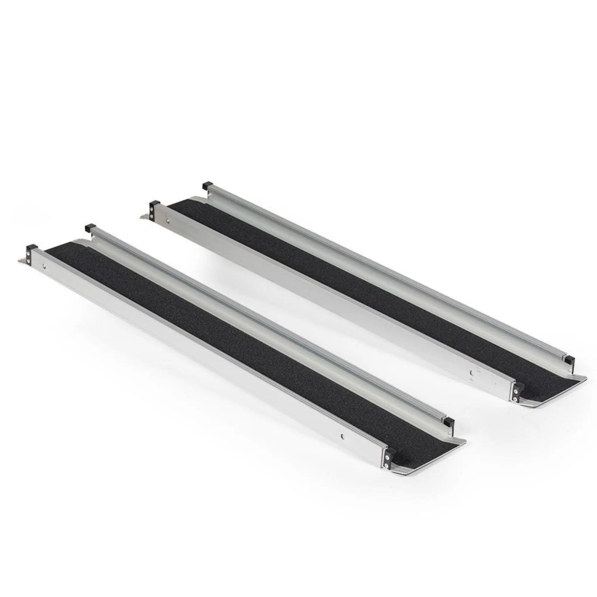 Designed to work seamlessly with wheelchairs that have aligned front and rear wheels, the ramp locks securely into place once expanded, ensuring a stable and safe experience every time