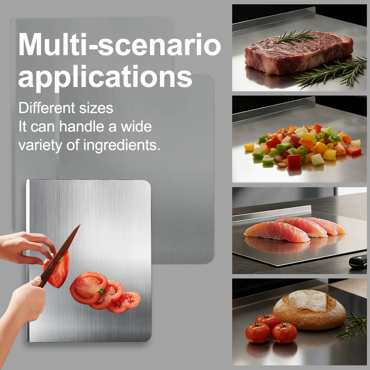 Both titanium cutting boards arrived in a timely manner, packaging was good, but unfortunately both boards are damaged.The surface is scratched, show signs of peeling and bubbly coating. They are unacceptable for food prep. Therefore, I will be returning these for a credit.