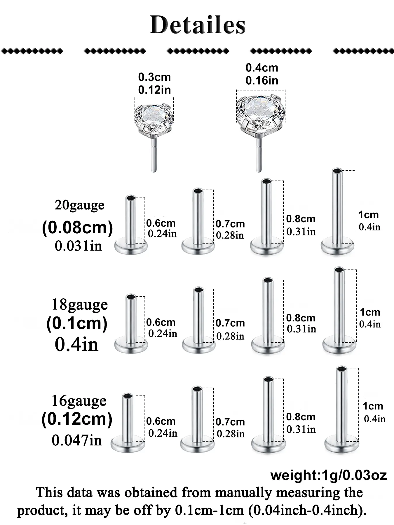 【Multiple Gauge Options】: Available in 20g, 18g, and 16g sizes, suitable for various types of piercings including cartilage and lip jewelry.