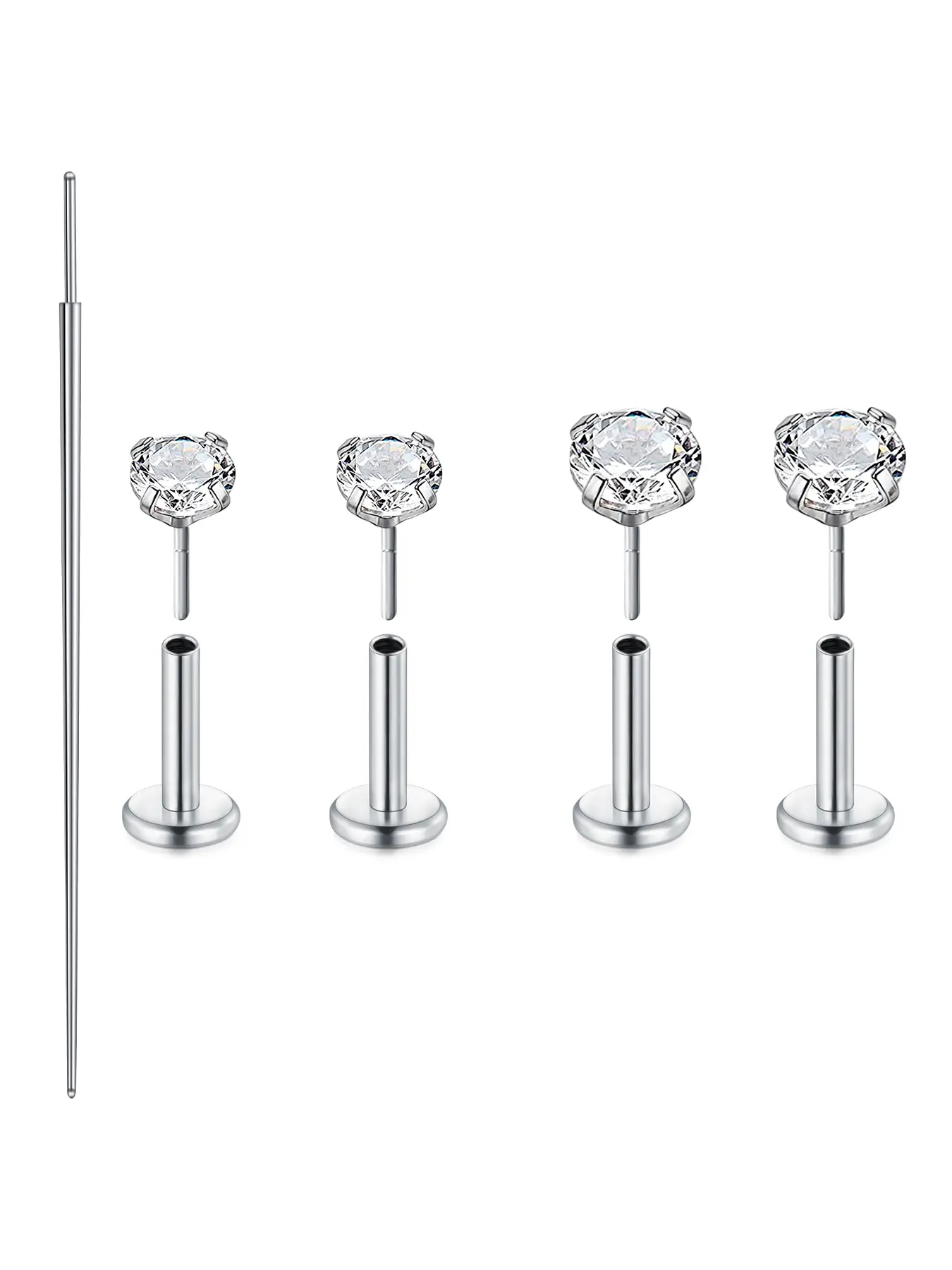 Titanium Earrings Flat Back Implant Grade Titanium Nose Stud Threadless Flat Back Earring Stud 20g 18g 16g Hypoallergenic Silver Cartilage Earrings for Women Surgical Steel Forward Helix Conch Tragus Piercing Jewelry Lip Labret Jewelry Push in