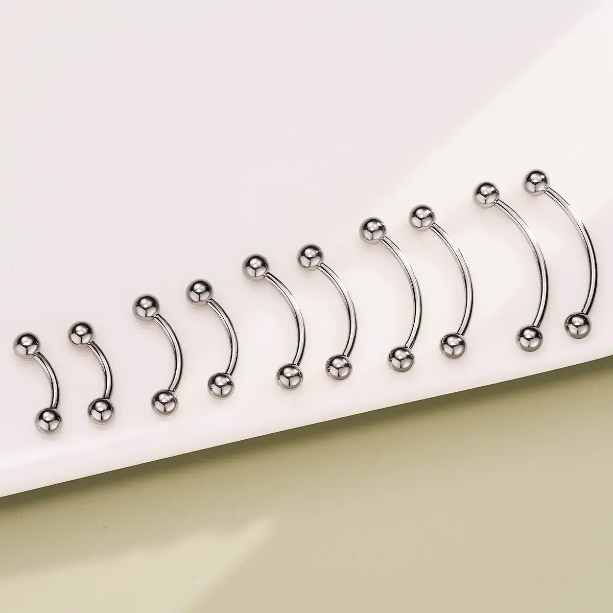 These 2pcs internally threaded eyebrow piercing curved bars are made of ASTM F136 titanium, for durability and comfort of insertion. The overlook is elegantly and understated, great for daily use.