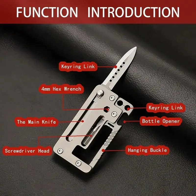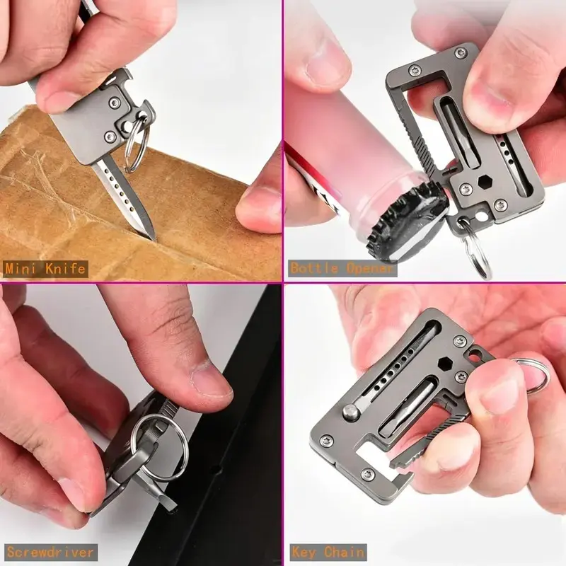 The Titanium Carabiner is a multi-functional EDC (Everyday Carry) keychain. It contains a knife, a bottle opener, a wrench, and a screwdriver. Perfect for those who need a compact and practical tool, this quick-release keychain gadget is perfect for everyday use.