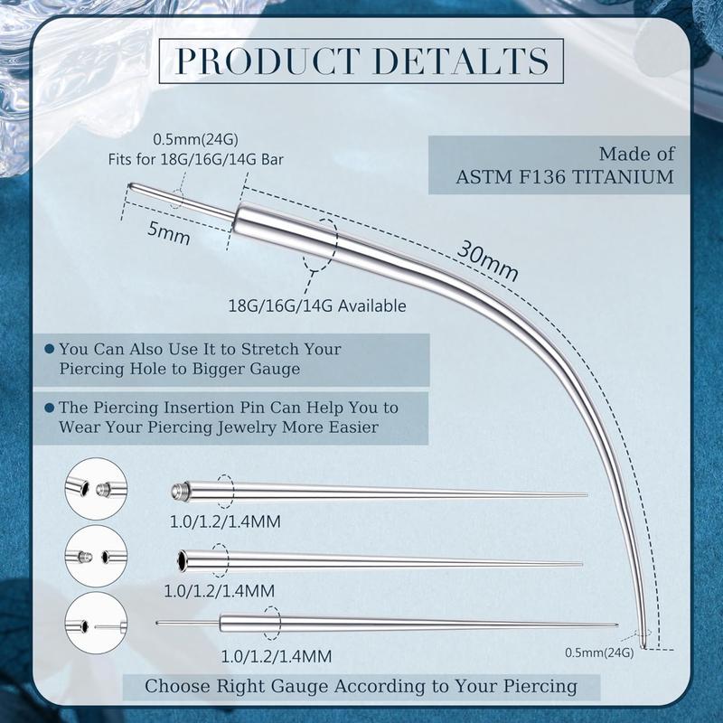 ·ASTM F136 Titanium Piercing Kit Taper Insertion Pin---Implant grade G25 Titanium,safe for long-term contact with body piercing.No lead & Nickle,perfectly suited for people with sensitive skin,hypoallergenic,no irritation for your skin,durable and reusable