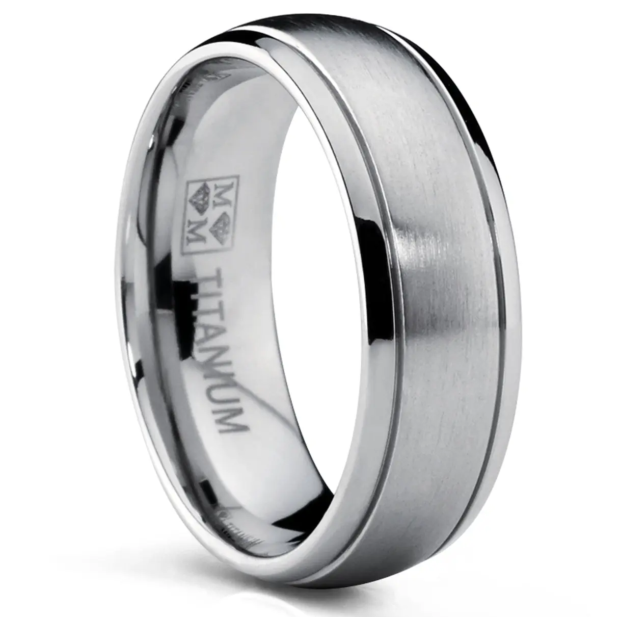 5. Men's 7 MM High Polish / Matte Finish Titanium ring with Grooves sizes 6 to 13
