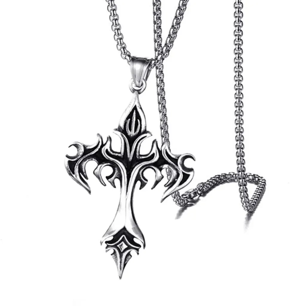Featuring a retro flame crucifix designs, this necklace showcases intricate detailing and exquisite craftsmanship, making it a standout pieces in any jewelry collection.