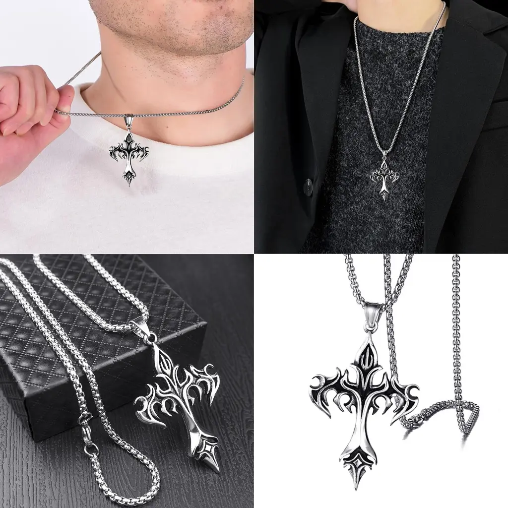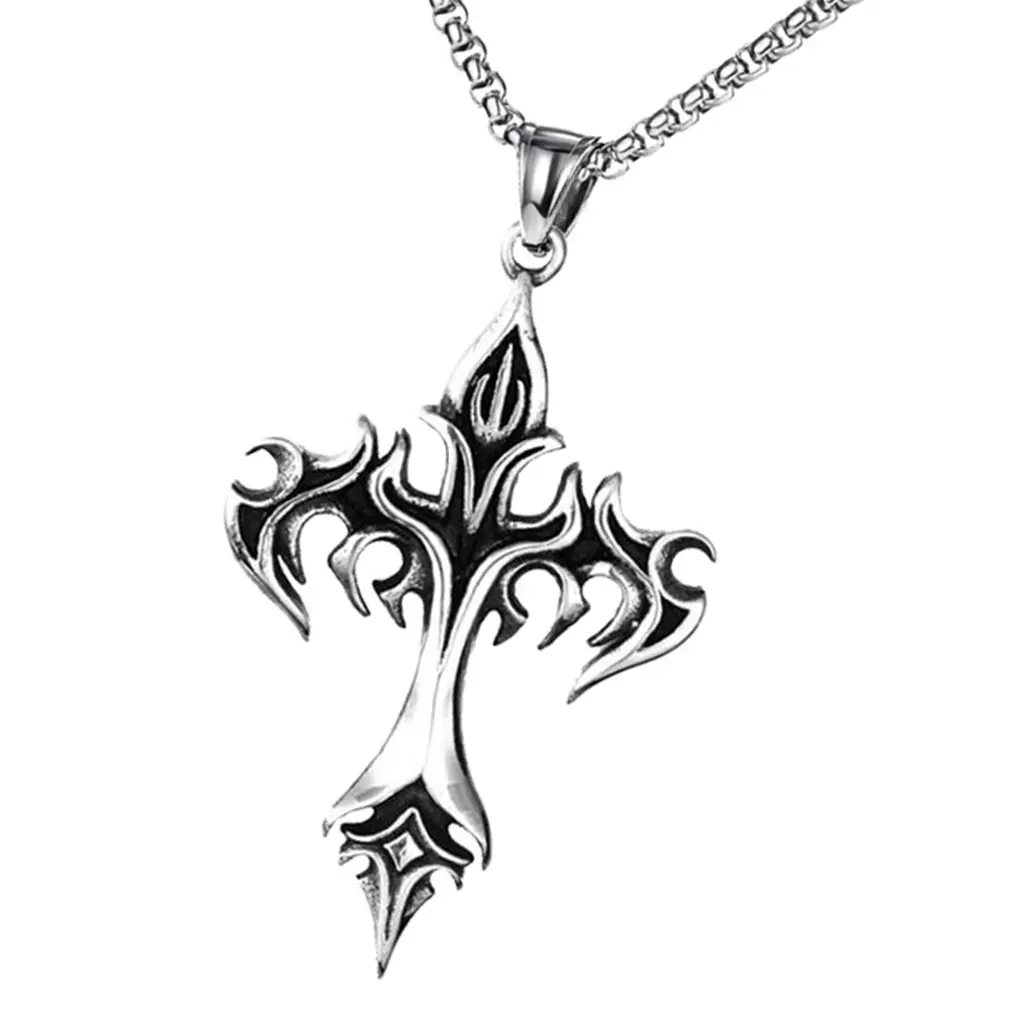 Featuring a retro flame crucifix designs, this necklace showcases intricate detailing and exquisite craftsmanship, making it a standout pieces in any jewelry collection.