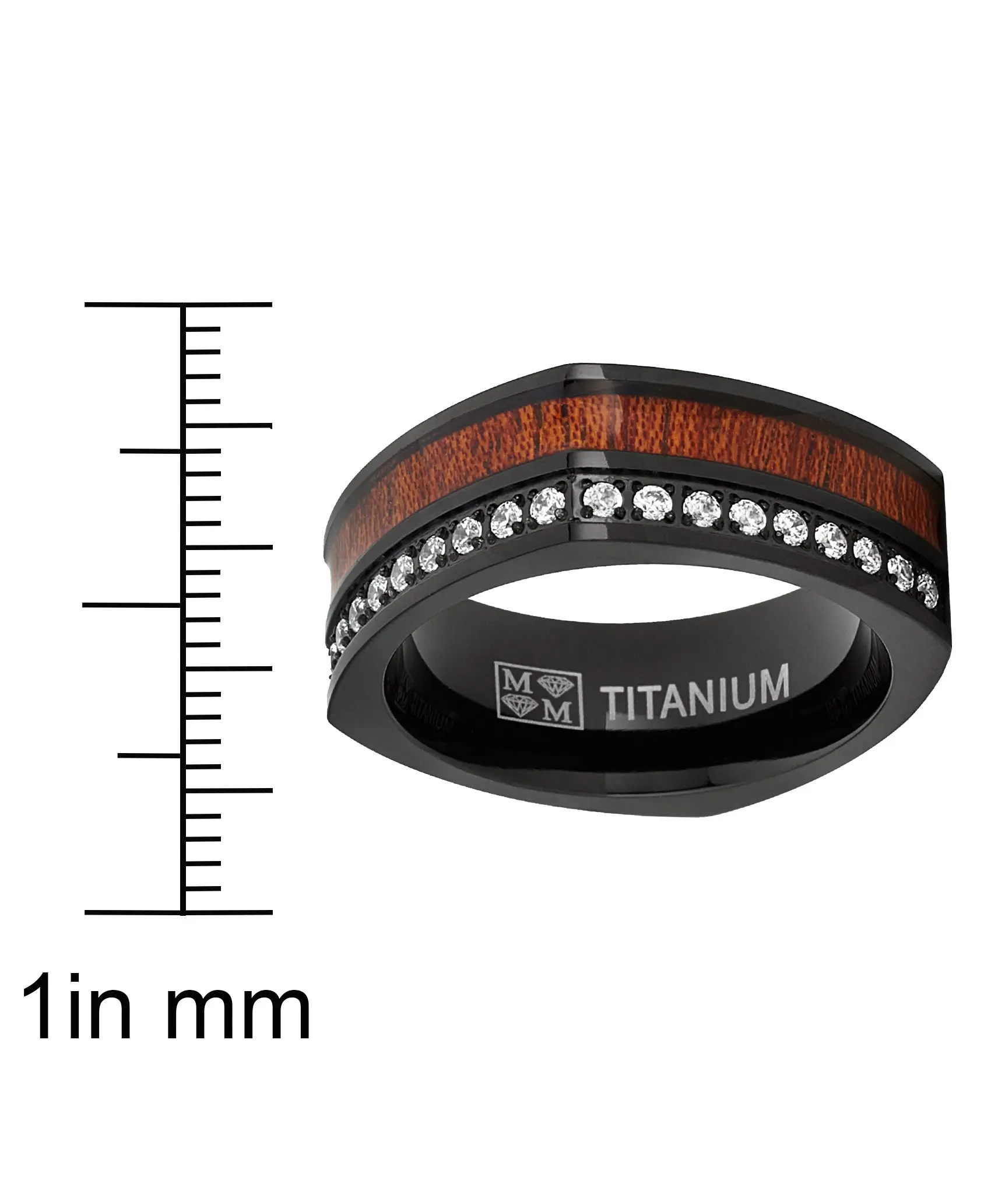 5. Men's Square Black Titanium Wedding Band Ring Cubic Zirconia Wood Inlay 8mm