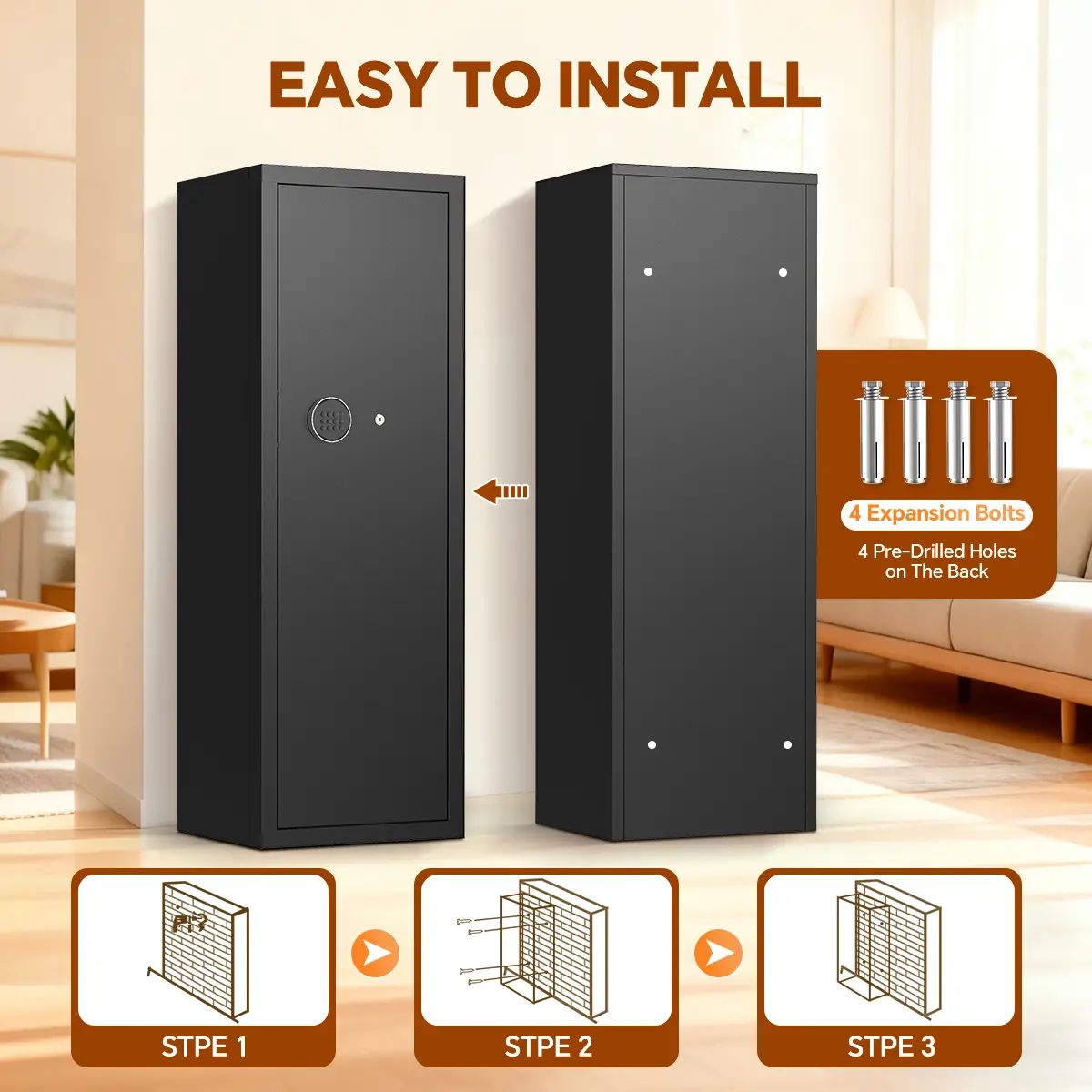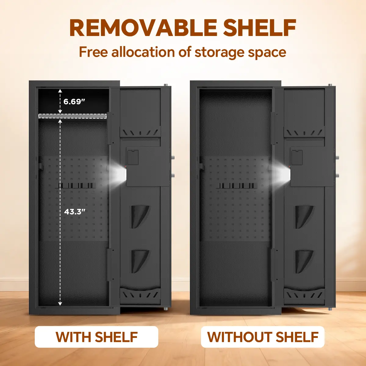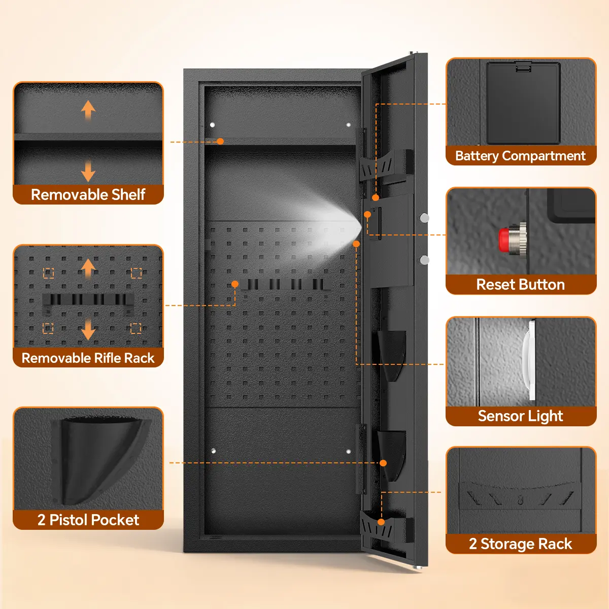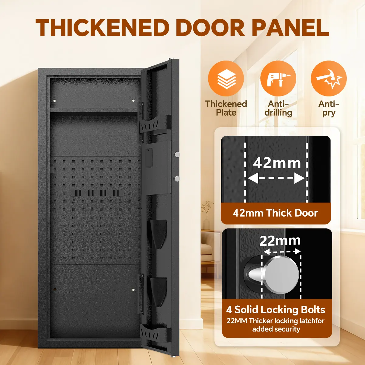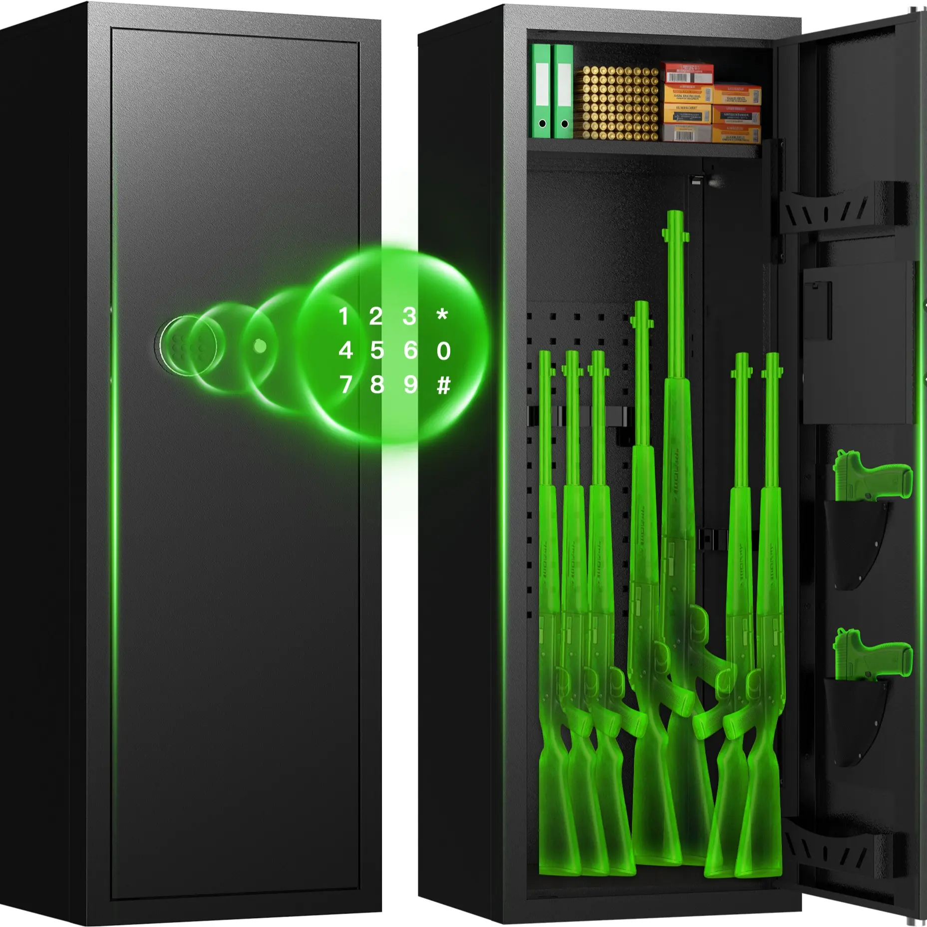 ② Emergency Key + Knob, the digital code prevents unauthorized access to the cabinet.