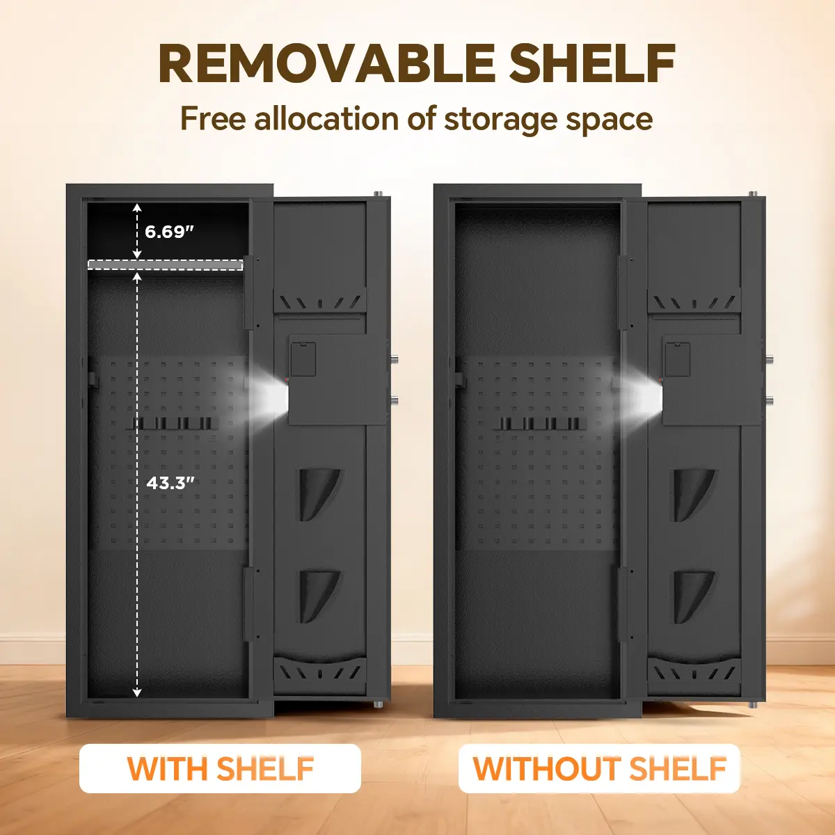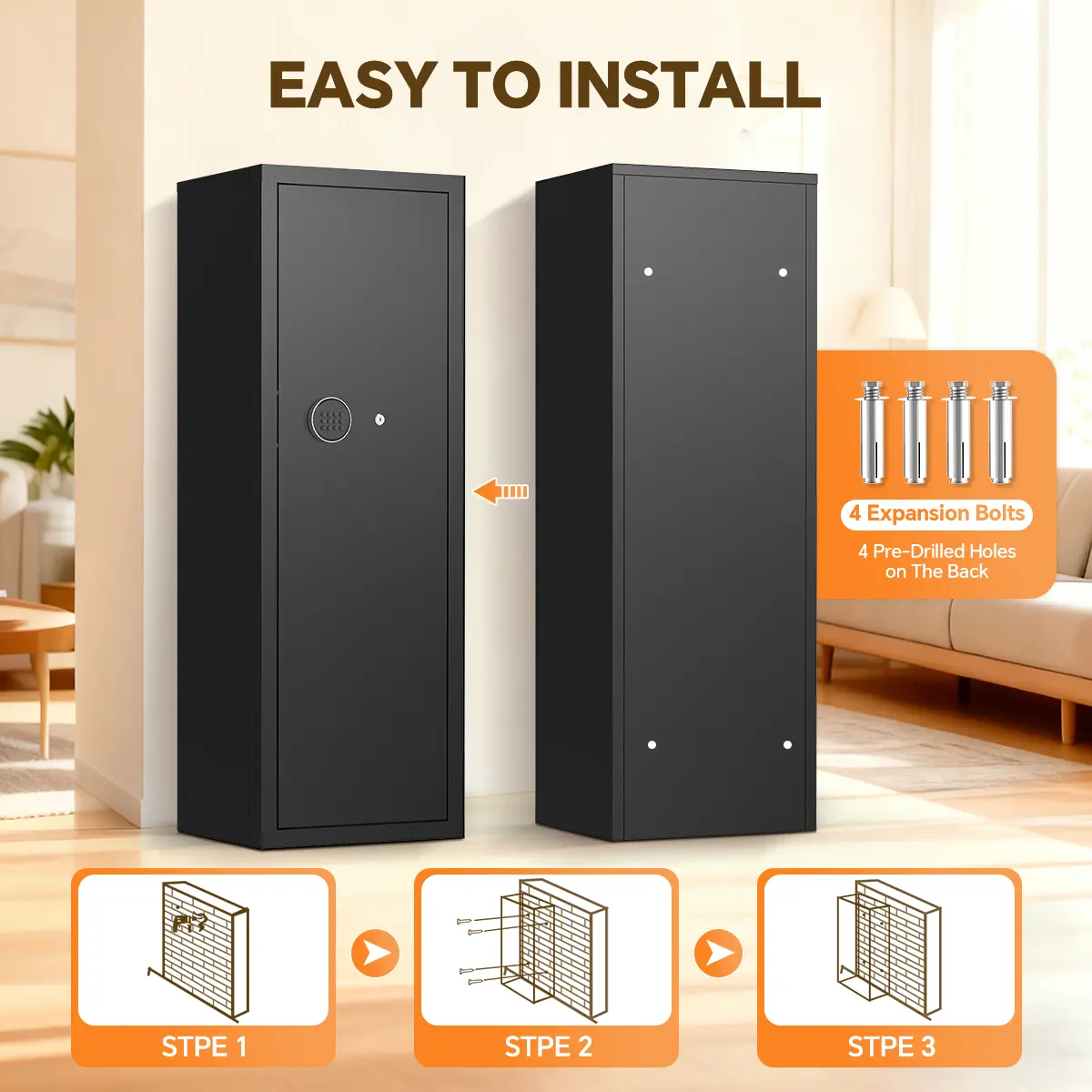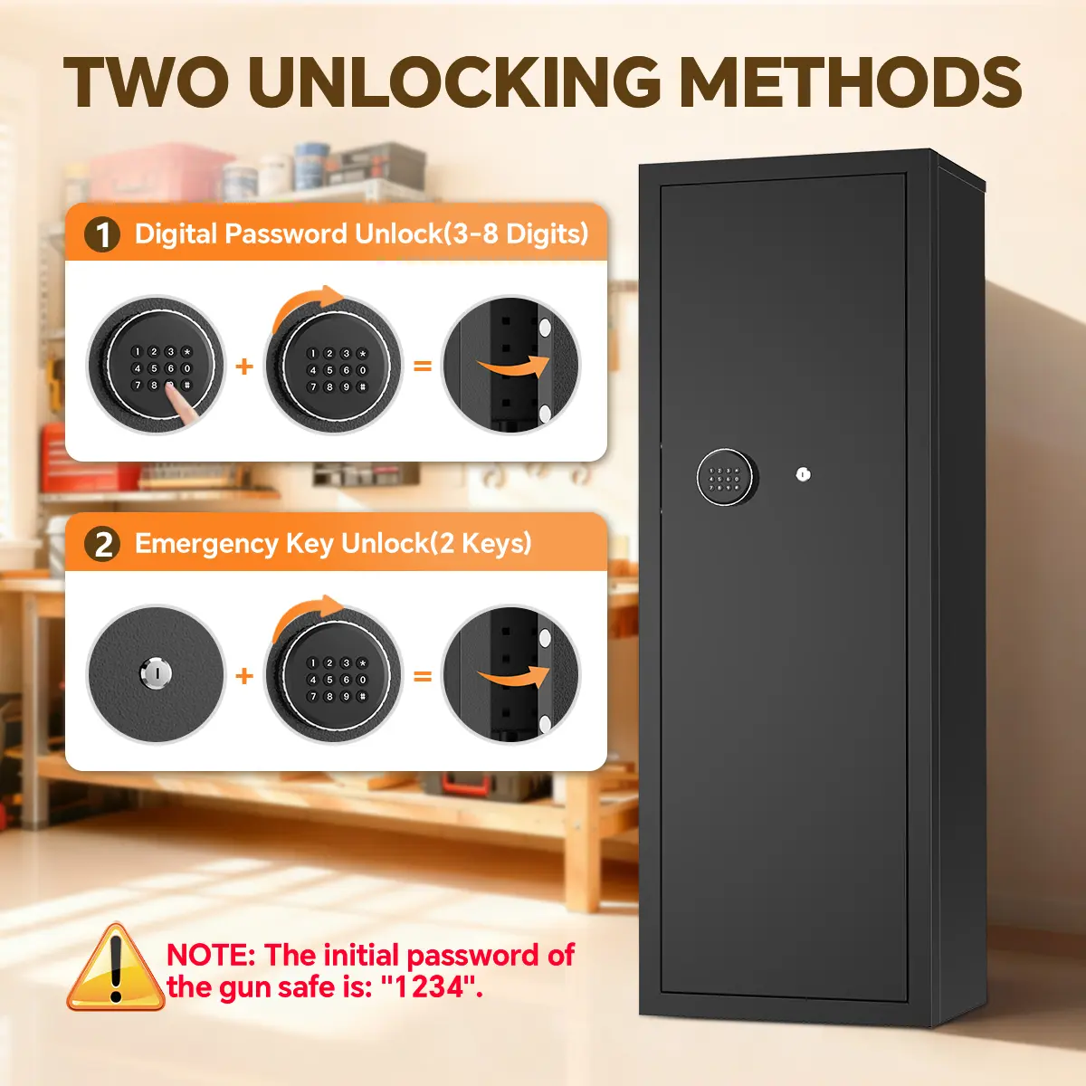 ② Emergency Key + Knob, the digital code prevents unauthorized access to the cabinet.(Note: 1: 4xAA batteries are required, not included, 2: Equipped with 2 emergency keys, please do not lock the keys inside the cabinet)