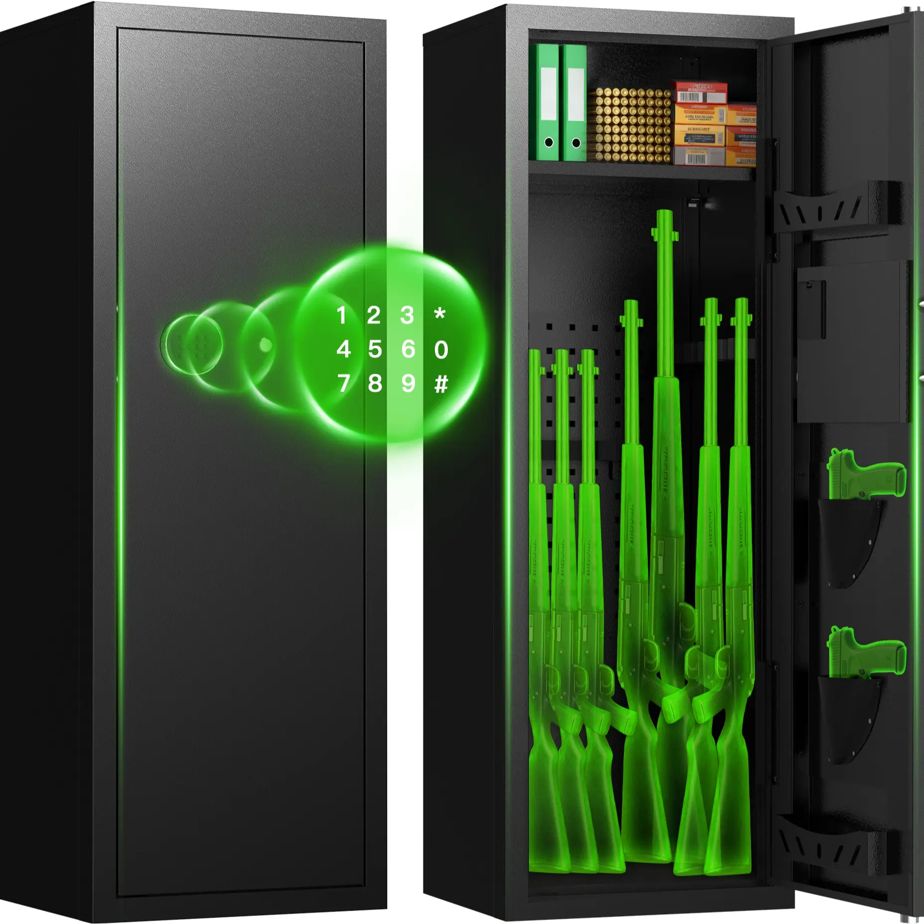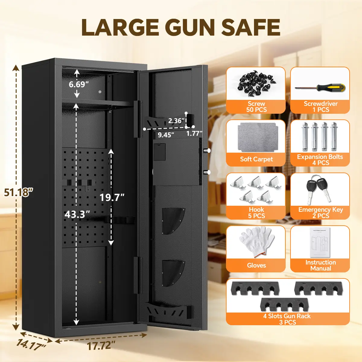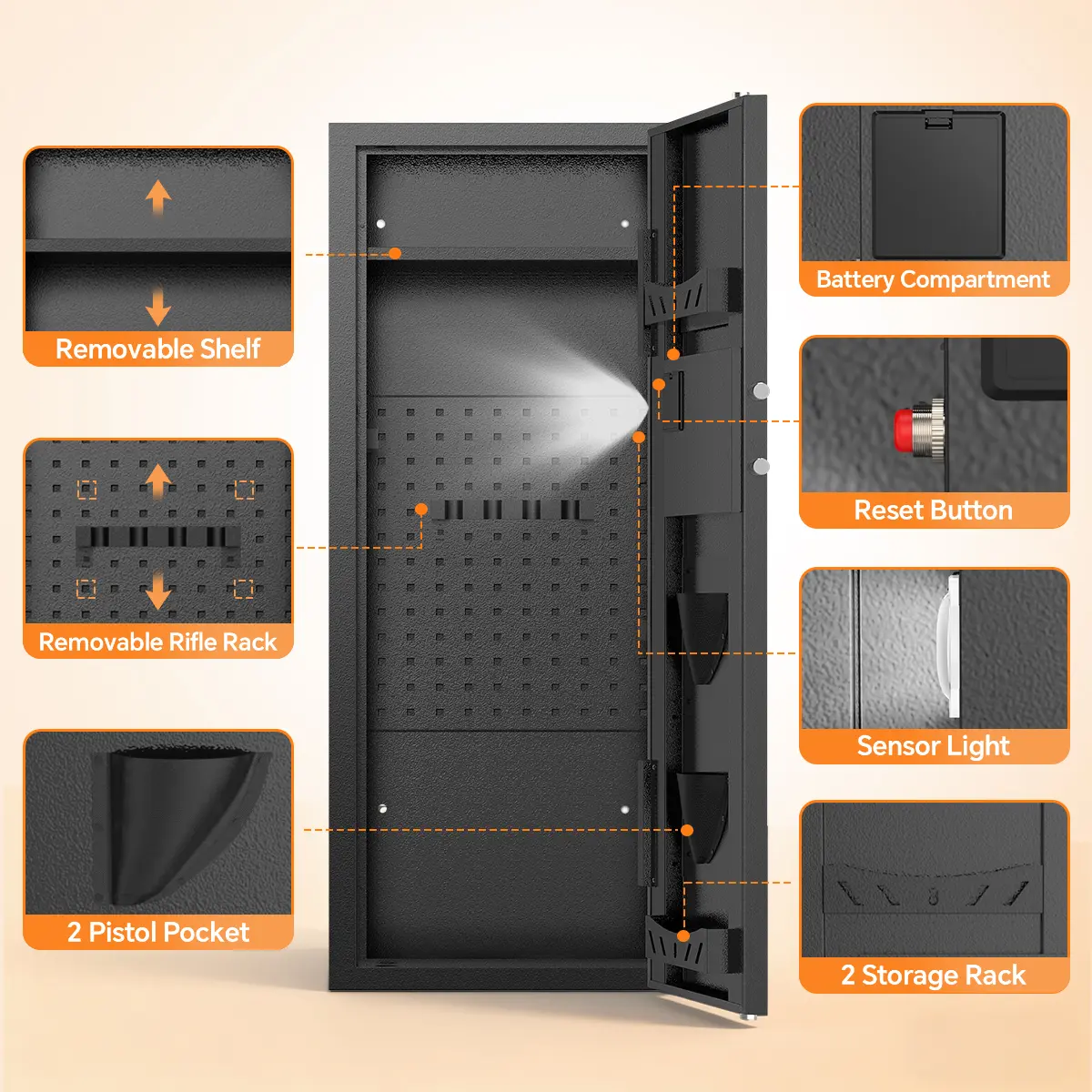 ② Emergency Key + Knob, the digital code prevents unauthorized access to the cabinet.(Note: 1: 4xAA batteries are required, not included, 2: Equipped with 2 emergency keys, please do not lock the keys inside the cabinet)