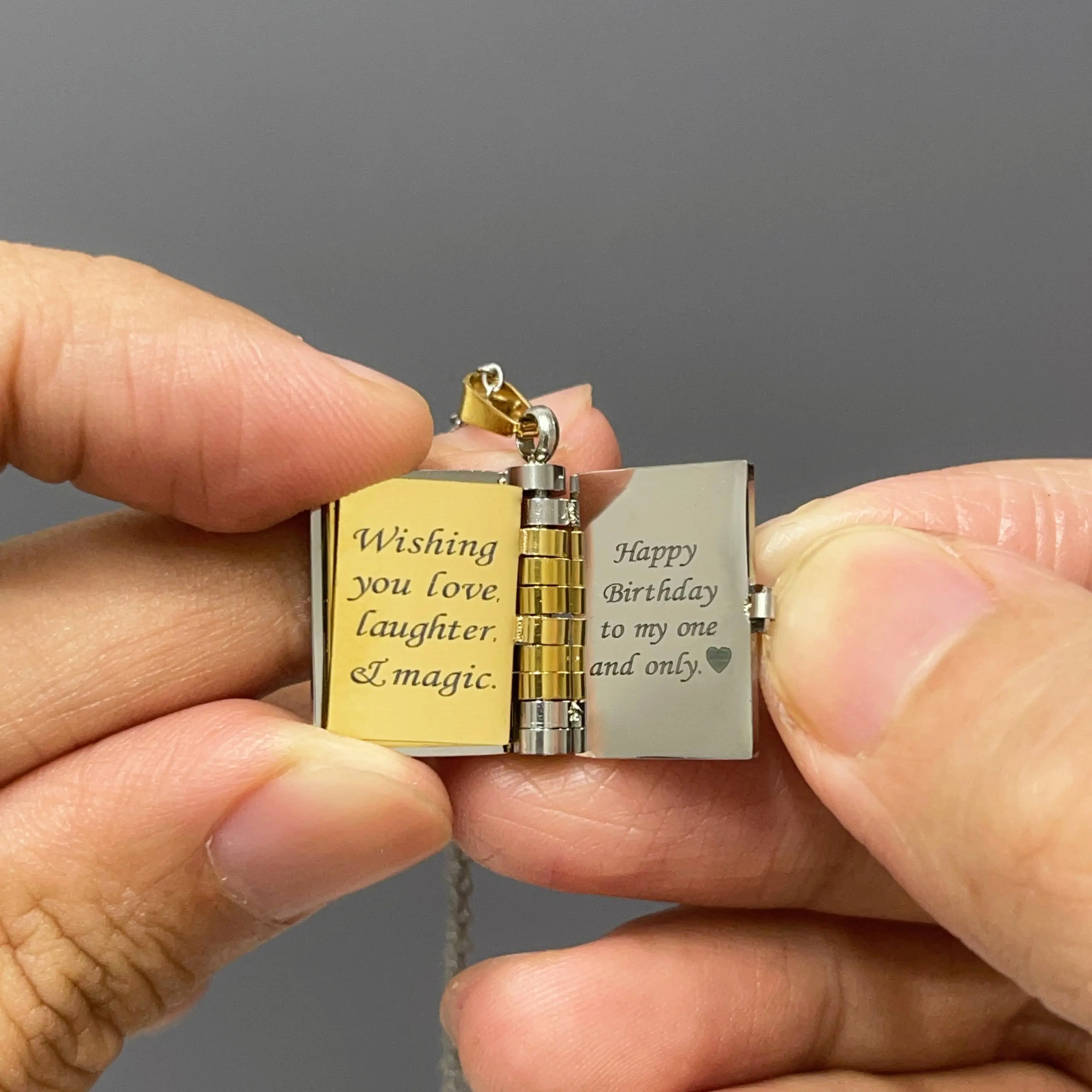·Mini Book Design: Opens to reveal 7 engraved pages of heartfelt birthday wishes.