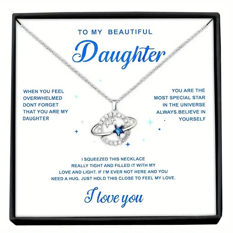 5. To My Daughter Cubic Zirconia Planet Asteroid Necklace, Girl Necklace Birthday Gift, Christmas Gift