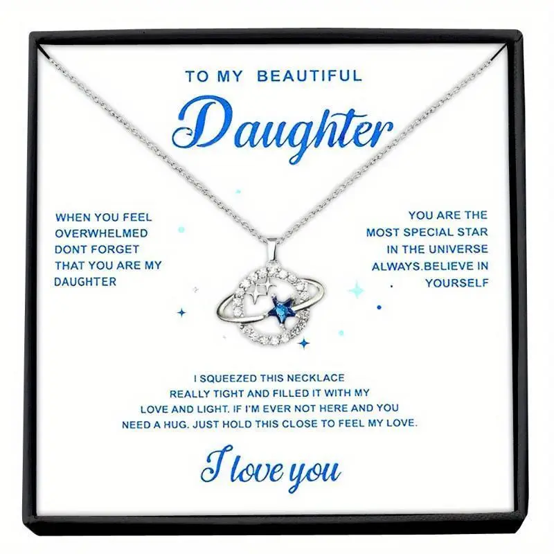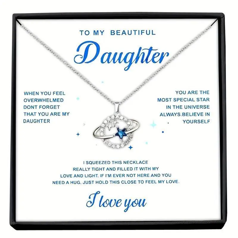 To My Daughter Cubic Zirconia Planet Asteroid Necklace, Girl Necklace Birthday Gift, Christmas Gift